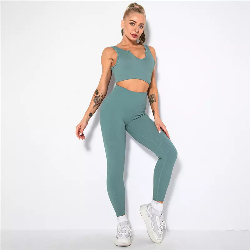 как выглядит Workout Set for Women 2 Piece Seamless Sport Bra High Waist Leggings Yoga Sets фото