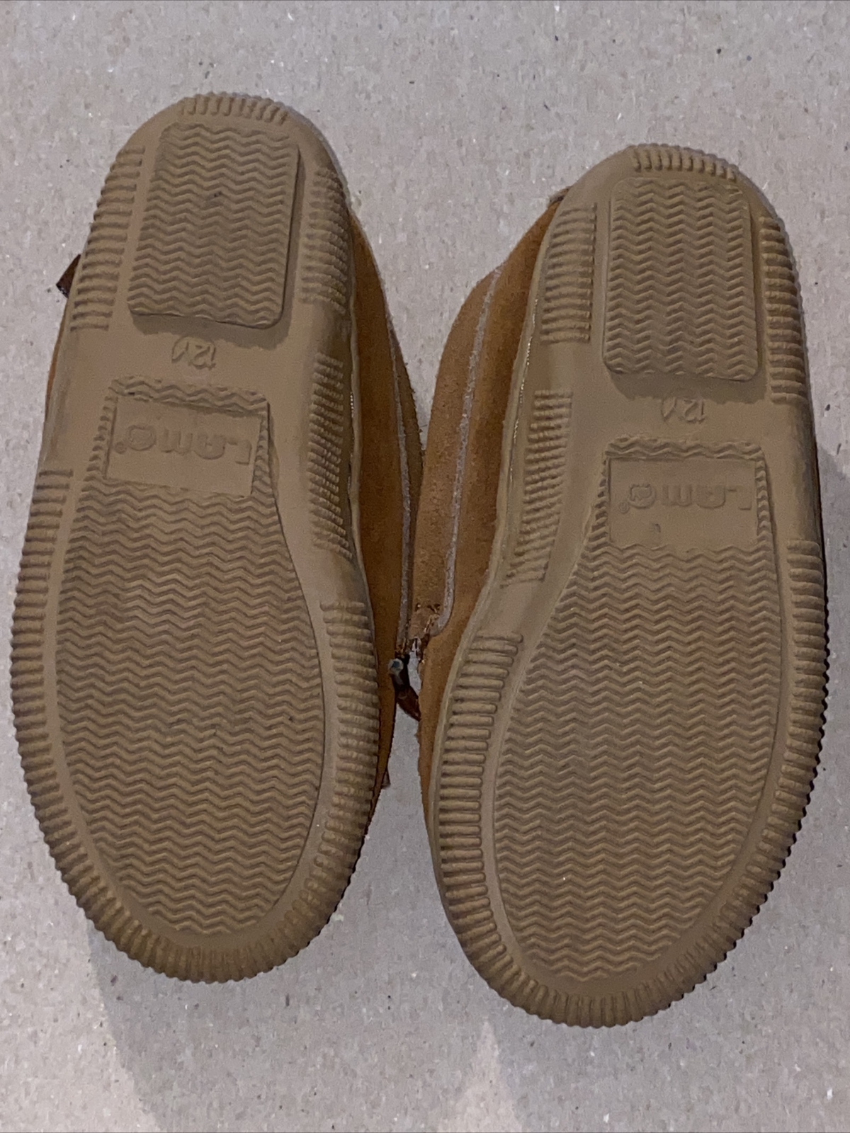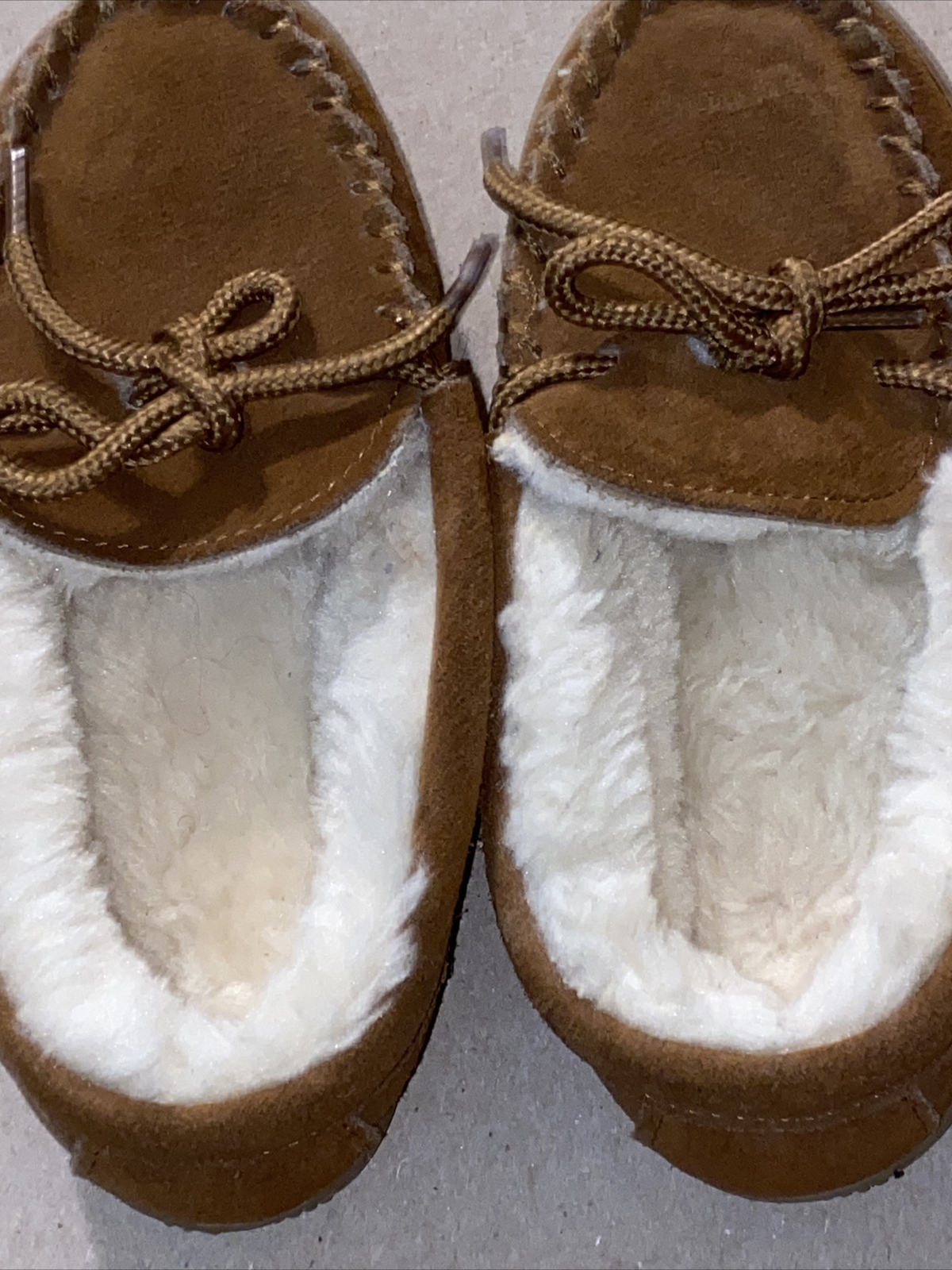 Lam Kids 12 Youth Boy Moccasin Slippers Brown Suede Faux Sherpa Lined Unisex