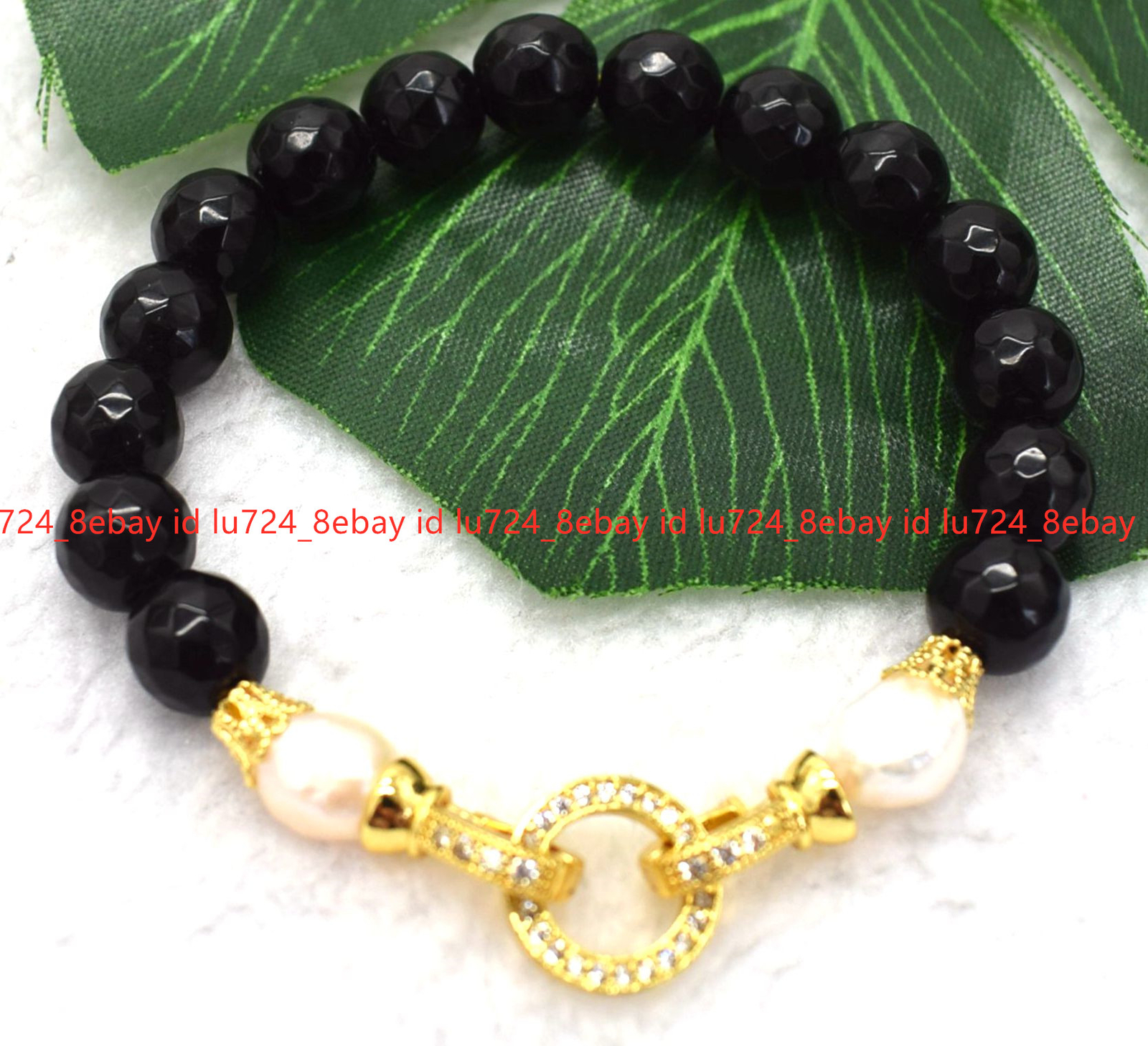 как выглядит Natural 8/10/12mm Faceted Black Agate Round Gemstone Beads Brecelet 7.5" фото