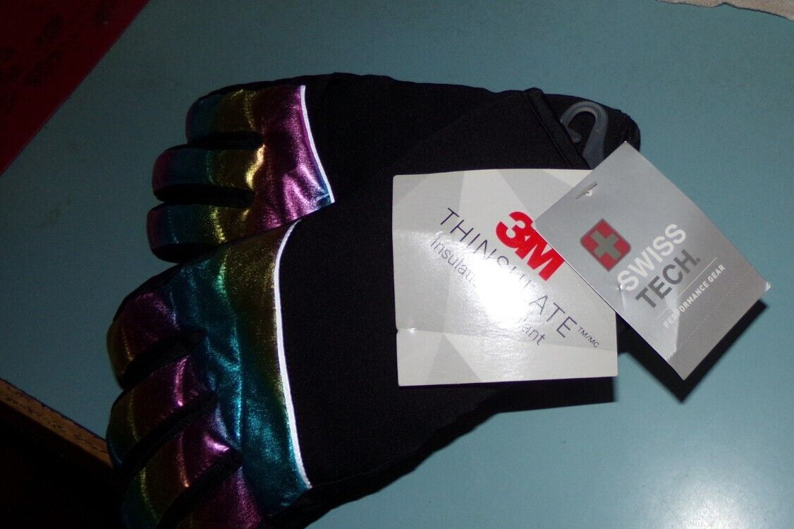 Swiss Tech Winter Gloves Youth L/XL Rainbow Shiny Puffer New With Tags
