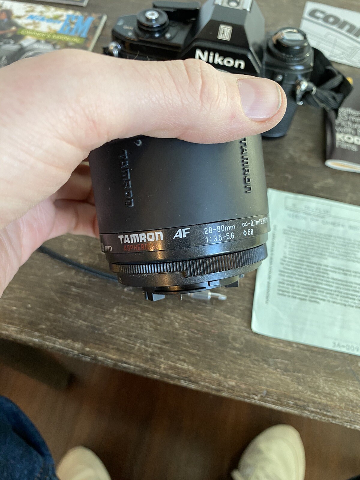 как выглядит Nikon EM Black 35mm SLR Film Camera W/ Tamron Aspherical Lens Manuals NICE фото