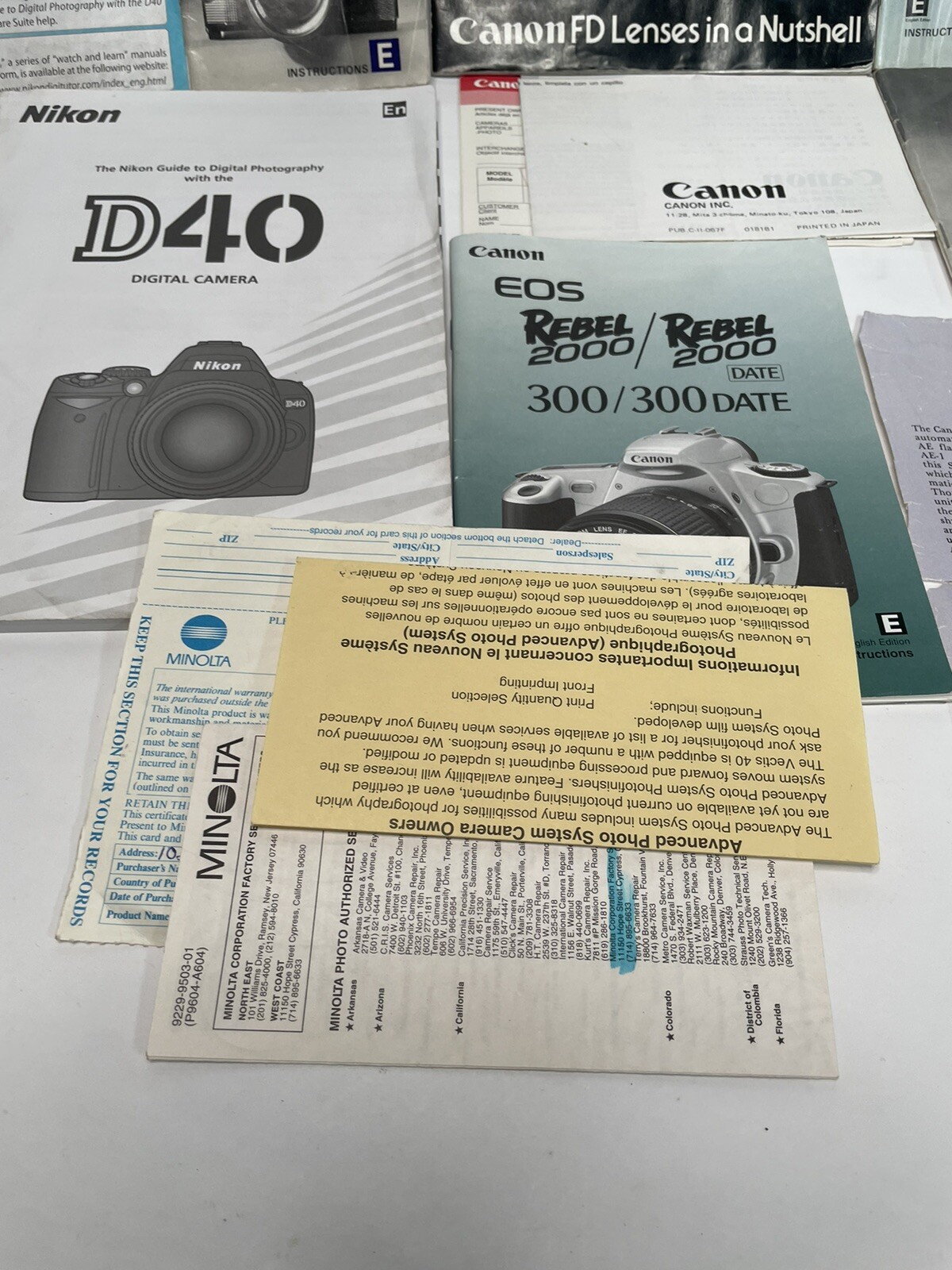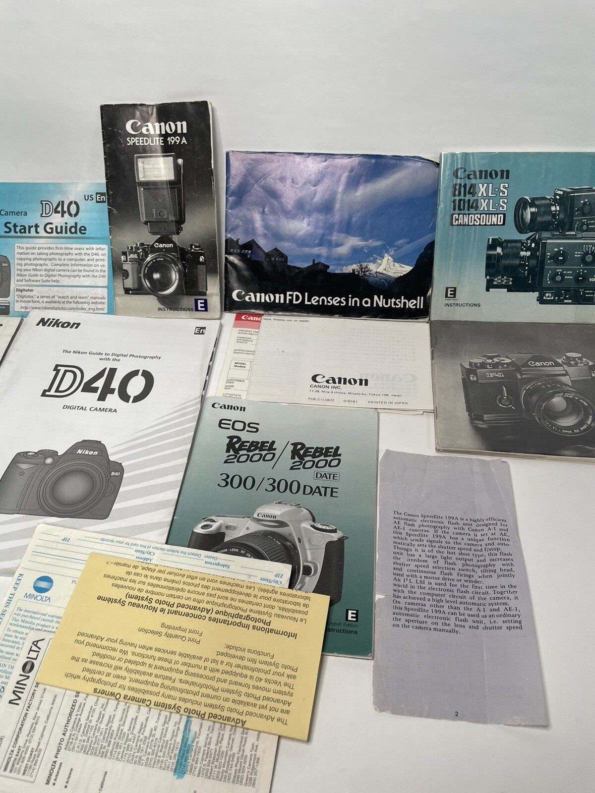 Lot Of Vintage Camera Manuals. Canon, Minolta, Nikon