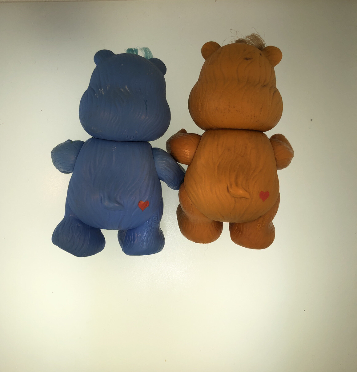1983 CARE BEARS Blue Cloud GRUMPY BEAR Orange Heart TENDERHEART BEAR pair