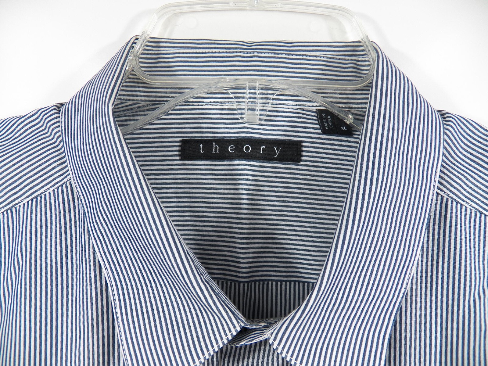 как выглядит THEORY MENS XL LUXURY CASUAL SPORT DRESS SHIRT BLUE WHITE STRIPE COTTON NYLON фото