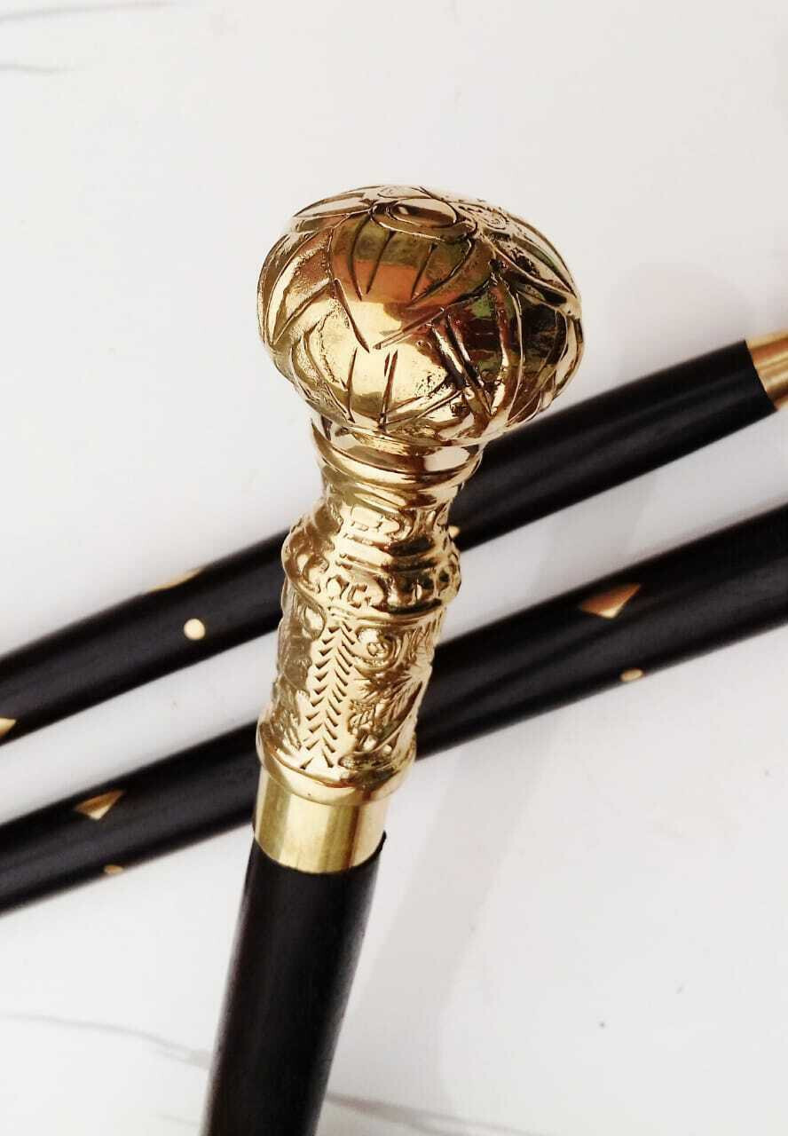 Vintage Solid Brass Designer Knob Head Handle Wooden Walking stick Cane Gift