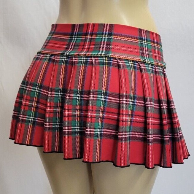MICRO MINI Spandex Skirt Plaid Pleated RedSpandex