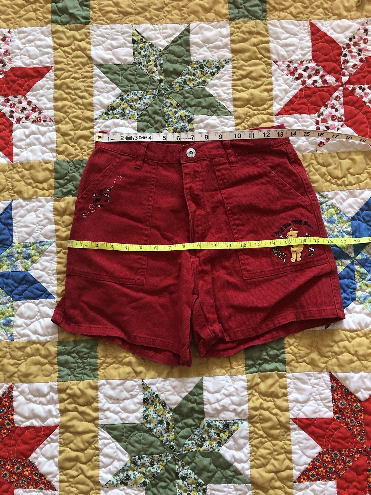 как выглядит Vintage 90 sPooh Winnie the Pooh Red Denim Shorts Ladies Size 10 фото