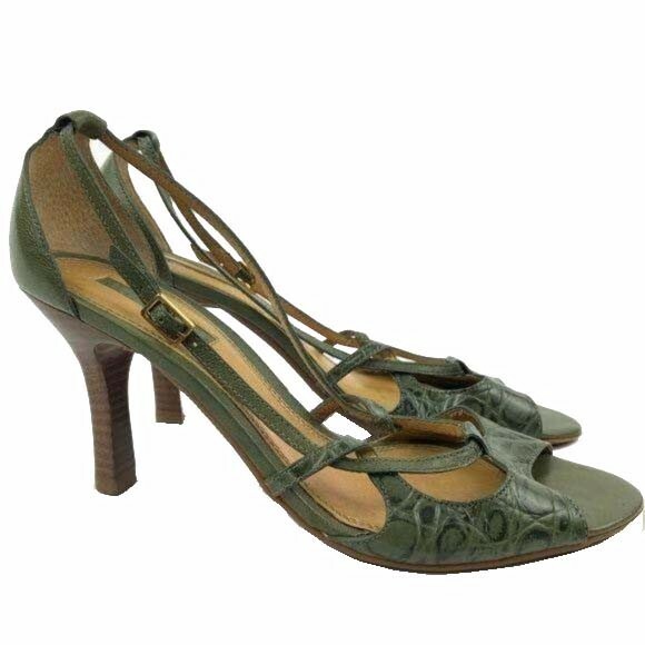 как выглядит Unisa Leif Green Leather Tortoise Print Sandals фото