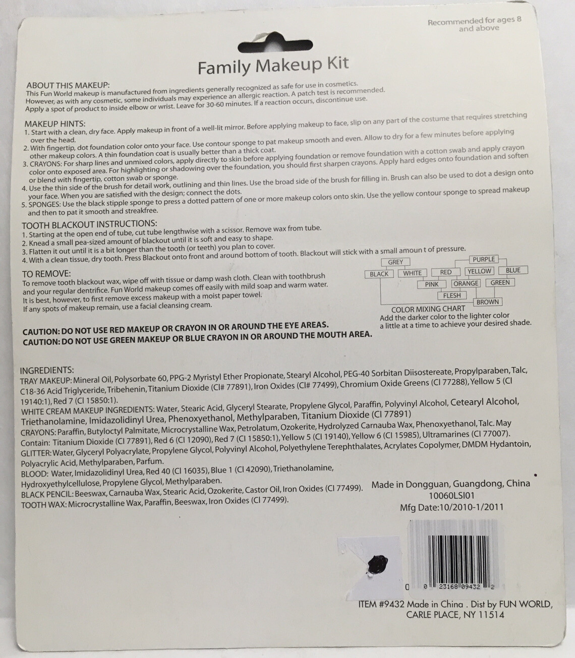 Fun World Family Makeup Kit Professional Quality Quick drying NIB