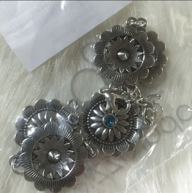 как выглядит PAPARAZZI Funky Flower Child Blue Ornate Silver Adjustable Bracelet фото