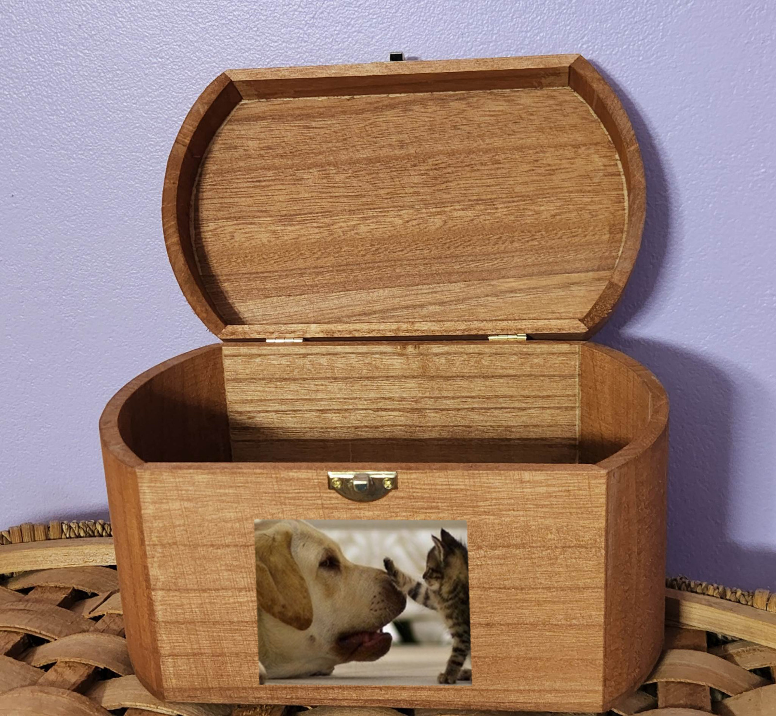 Personalized Pet Memorial Urn Box for Dogs and Cats with Photo Display -