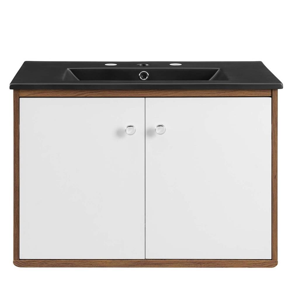 Modway Transmit 30 Particleboard Wood Wall-Mount Bathroom Vanity - Walnut/Black