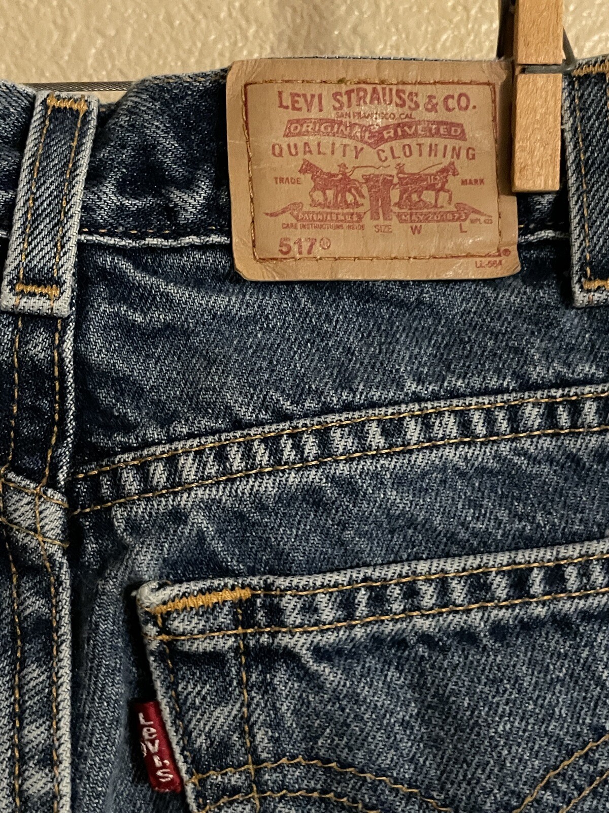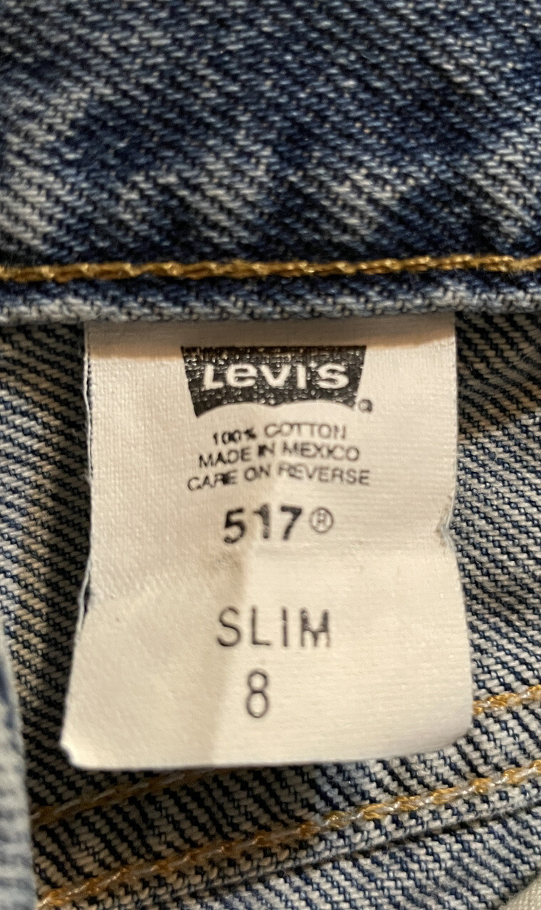 Vintage Levis 517 Bootcut 8 slim Blue Denim Jeans Youth 22x24 Western red tab
