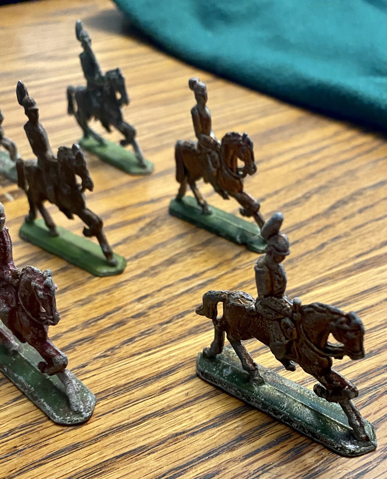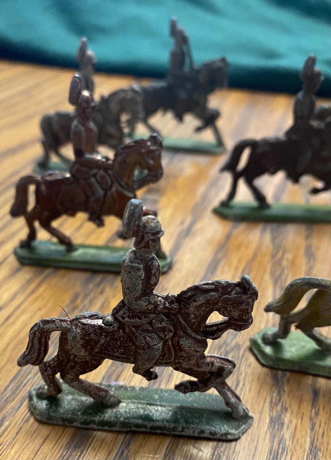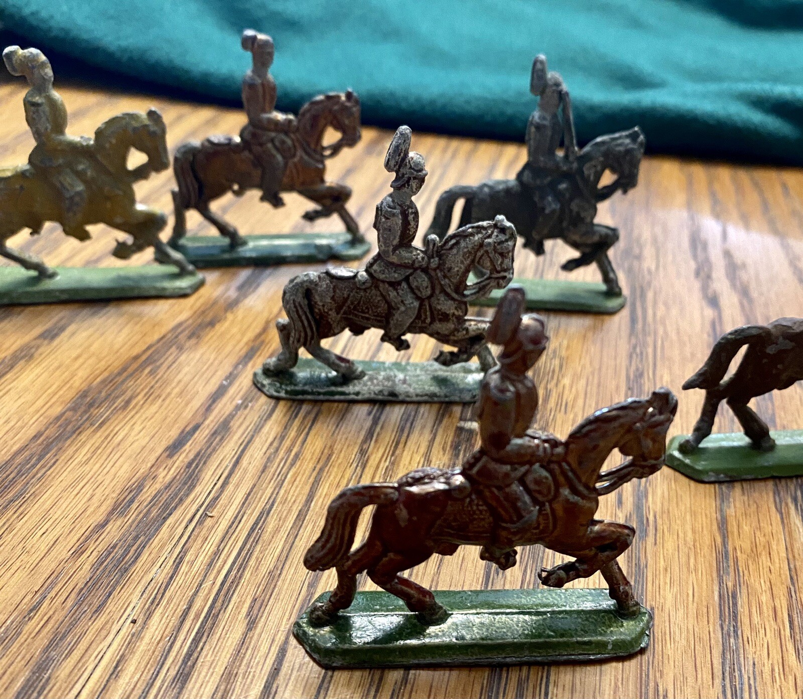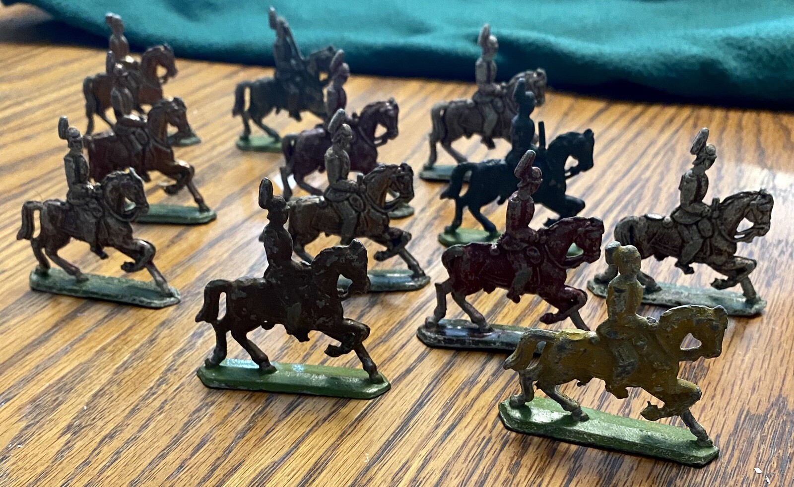 Toy 12 Lead Soldiers on Horses British French Army approx. 2 in tall