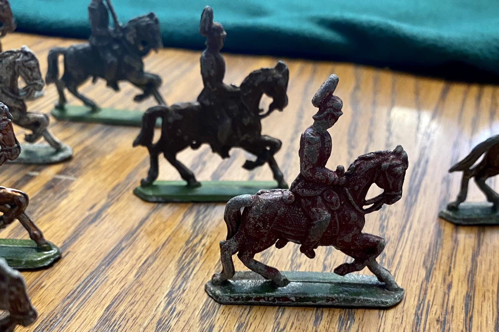 как выглядит Toy 12 Lead Soldiers on Horses British French Army approx. 2 in tall фото