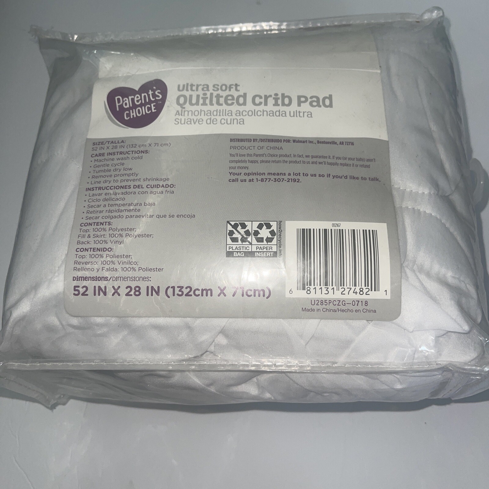 Parent's Choice Fitted Quilted Crib Mattress Pad White 52 x 28