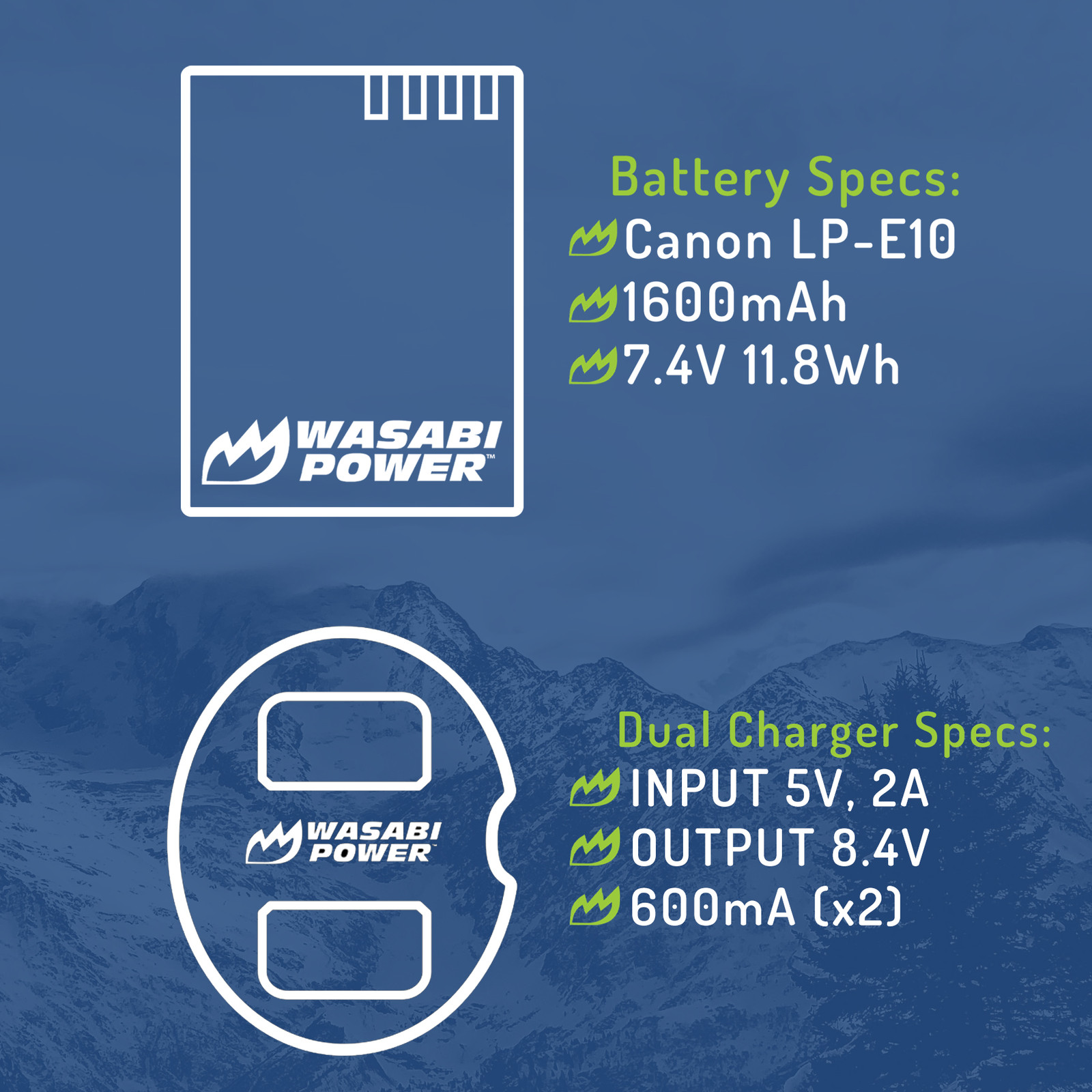 Wasabi Power Battery 2-Pack and Dual Charger for Canon LP-E10