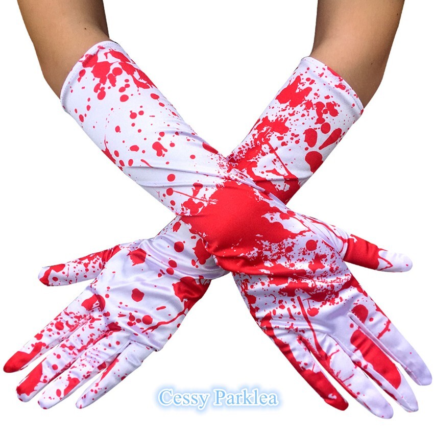 SN-D1-1Unisex Men Ladies Mid-Long Blood Splattered Stained Bloody Gloves 1 Pairs