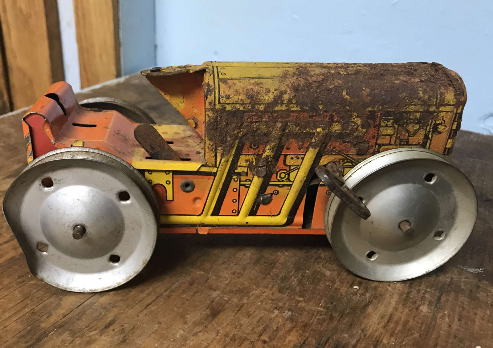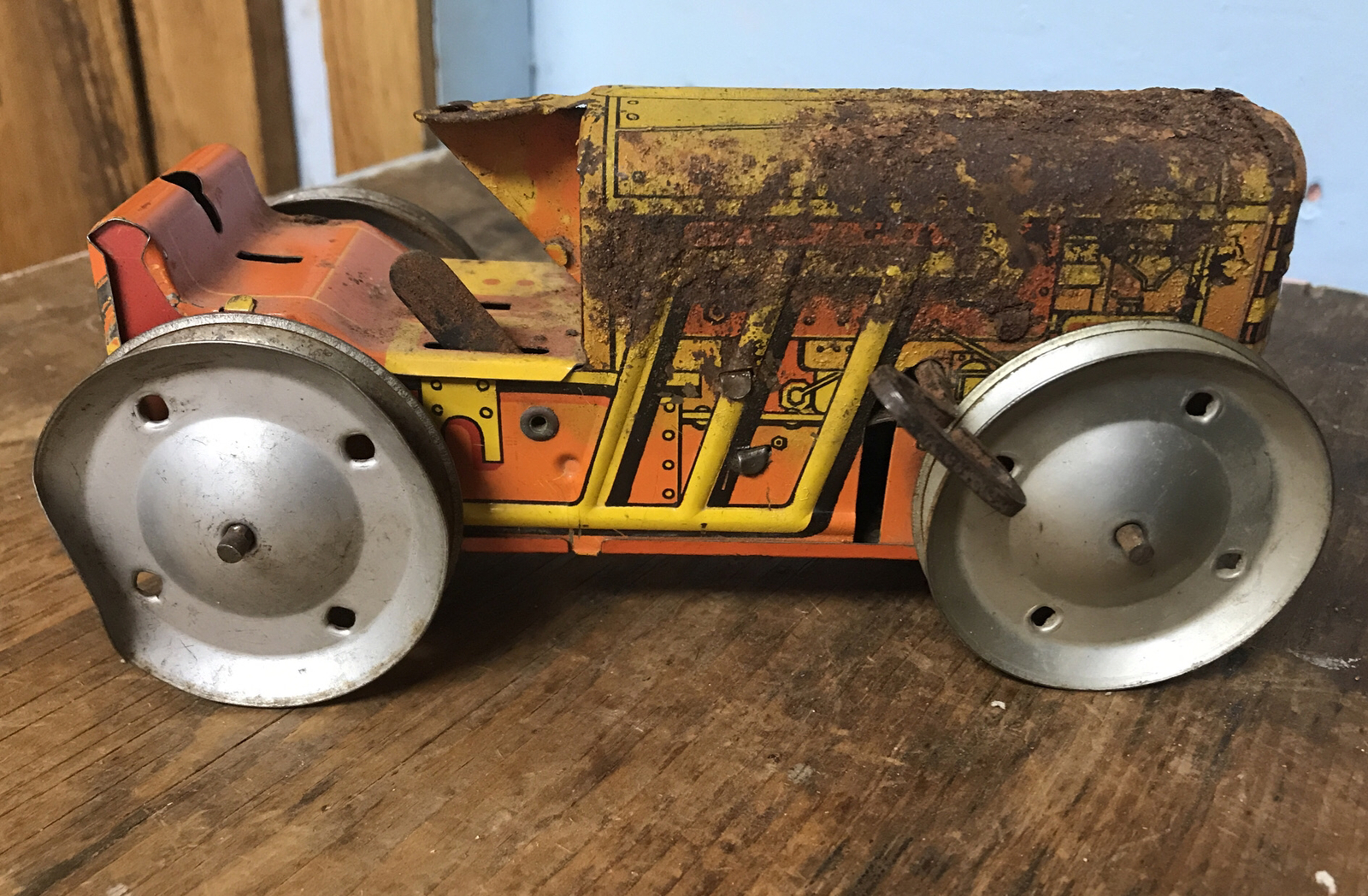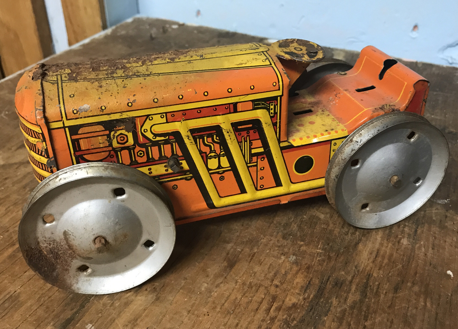 Vintage 30'S/40'S MARX Tin Litho Wind Up Caterpillar Bulldozer Tractor Toy