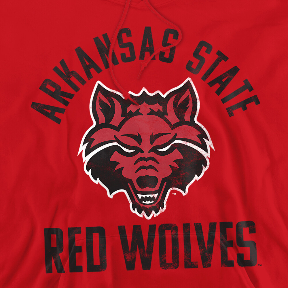 Arkansas State University Adult Pullover Hoodie Red Wolves Logo, Red, S-3XL