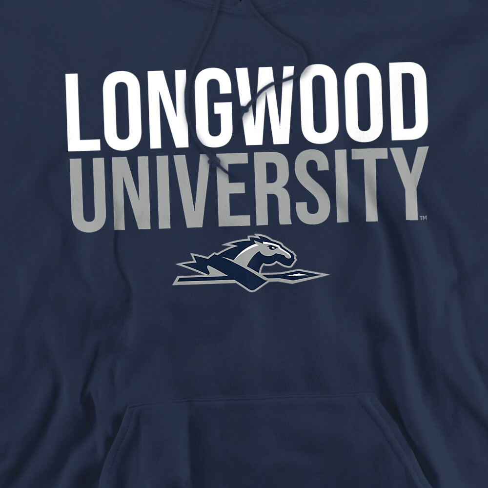 Longwood University Adult Pullover Hoodie Stacked, Navy, S-3XL