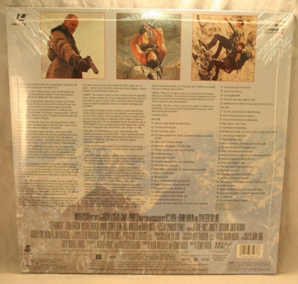 Laserdisc u Cliffhanger Sylvester Stallone John Lithgow Michael Rooker WS