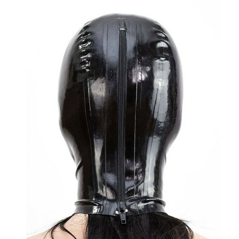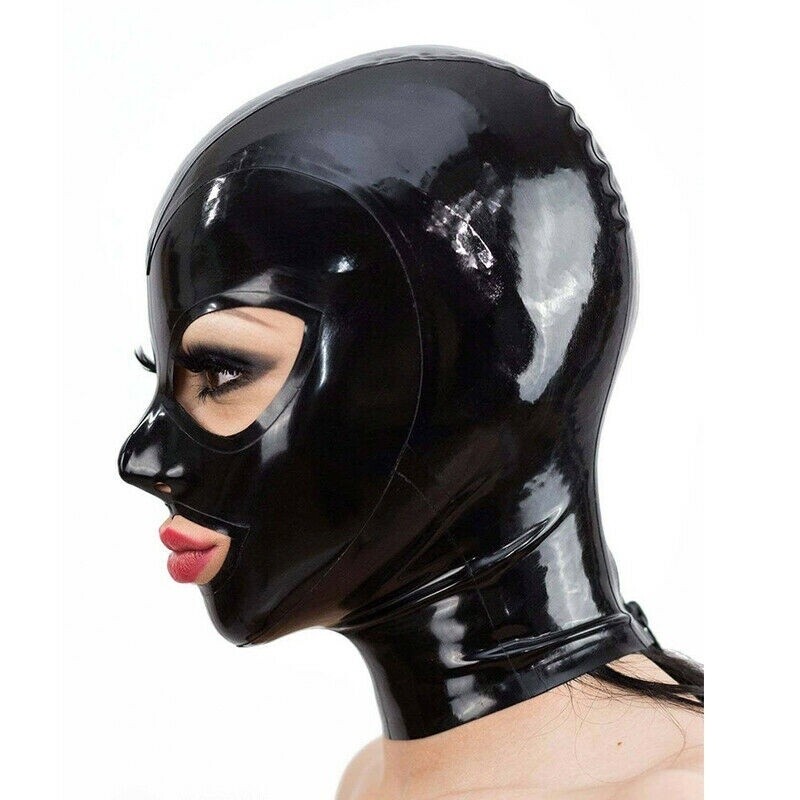 как выглядит Latex Hood Open Eyes and Mouth for Beautiful Girl Rubber Mask Club Wear Costume фото