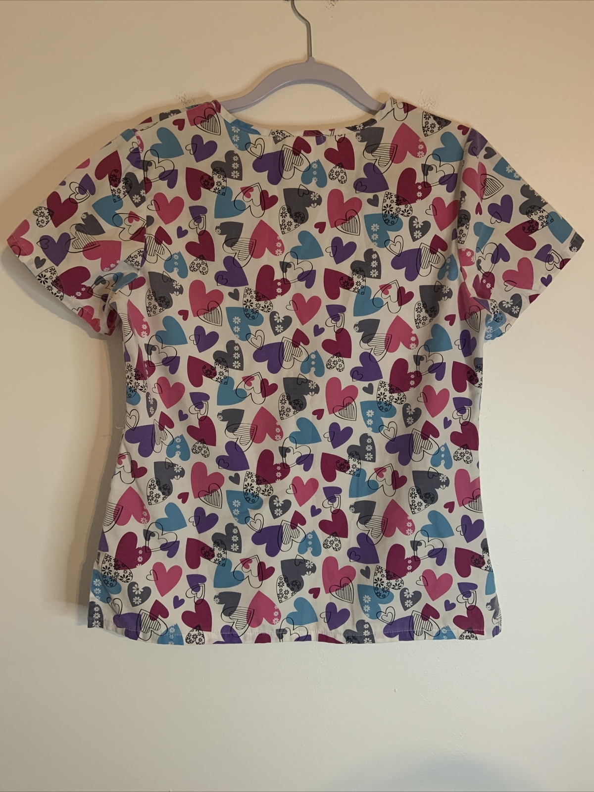 SB Scrubs White Multi-Color Heart V-Neck Scrub Top Medical Uniform XS
