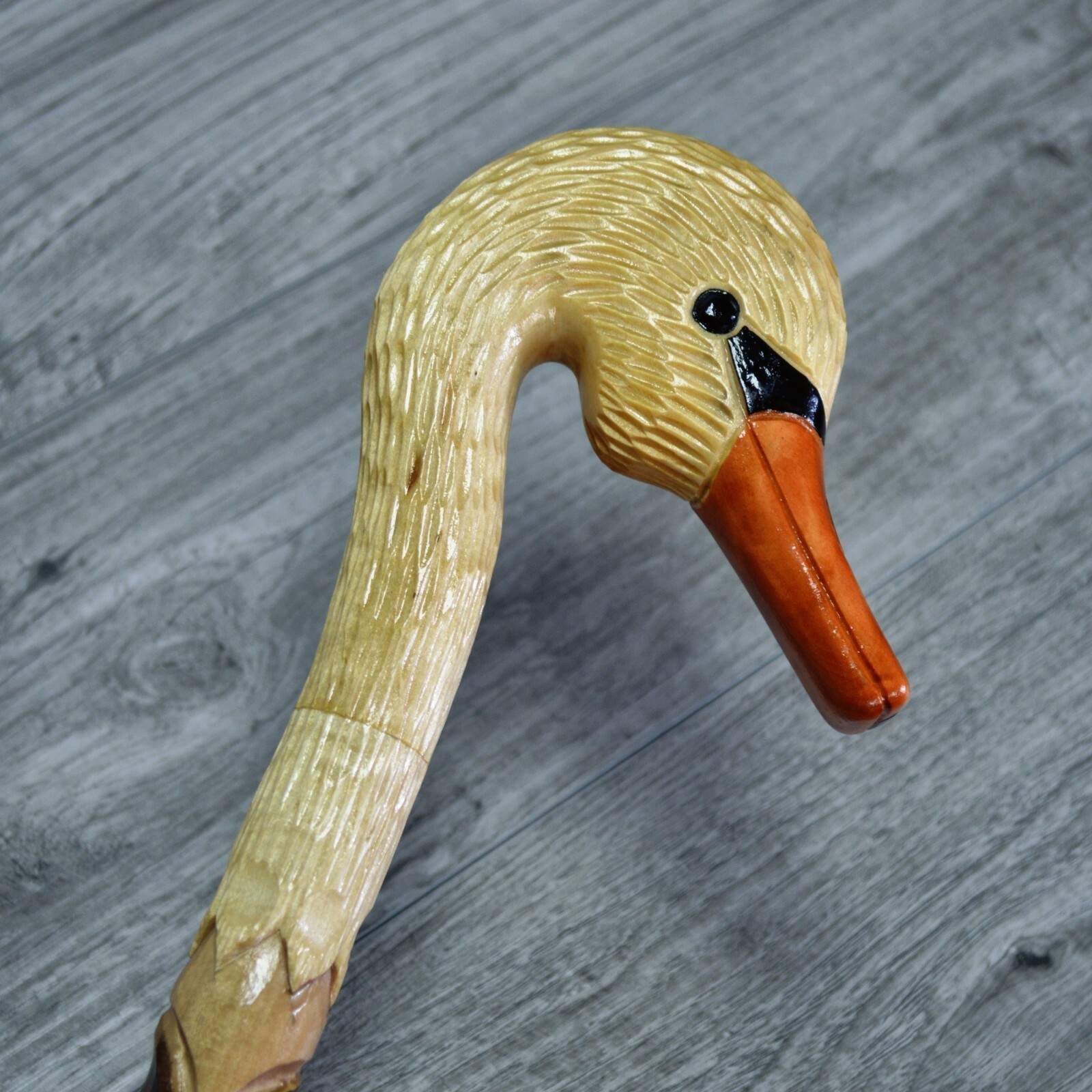 Cane Walking Stick Wooden carved Handmade - Swan / UK