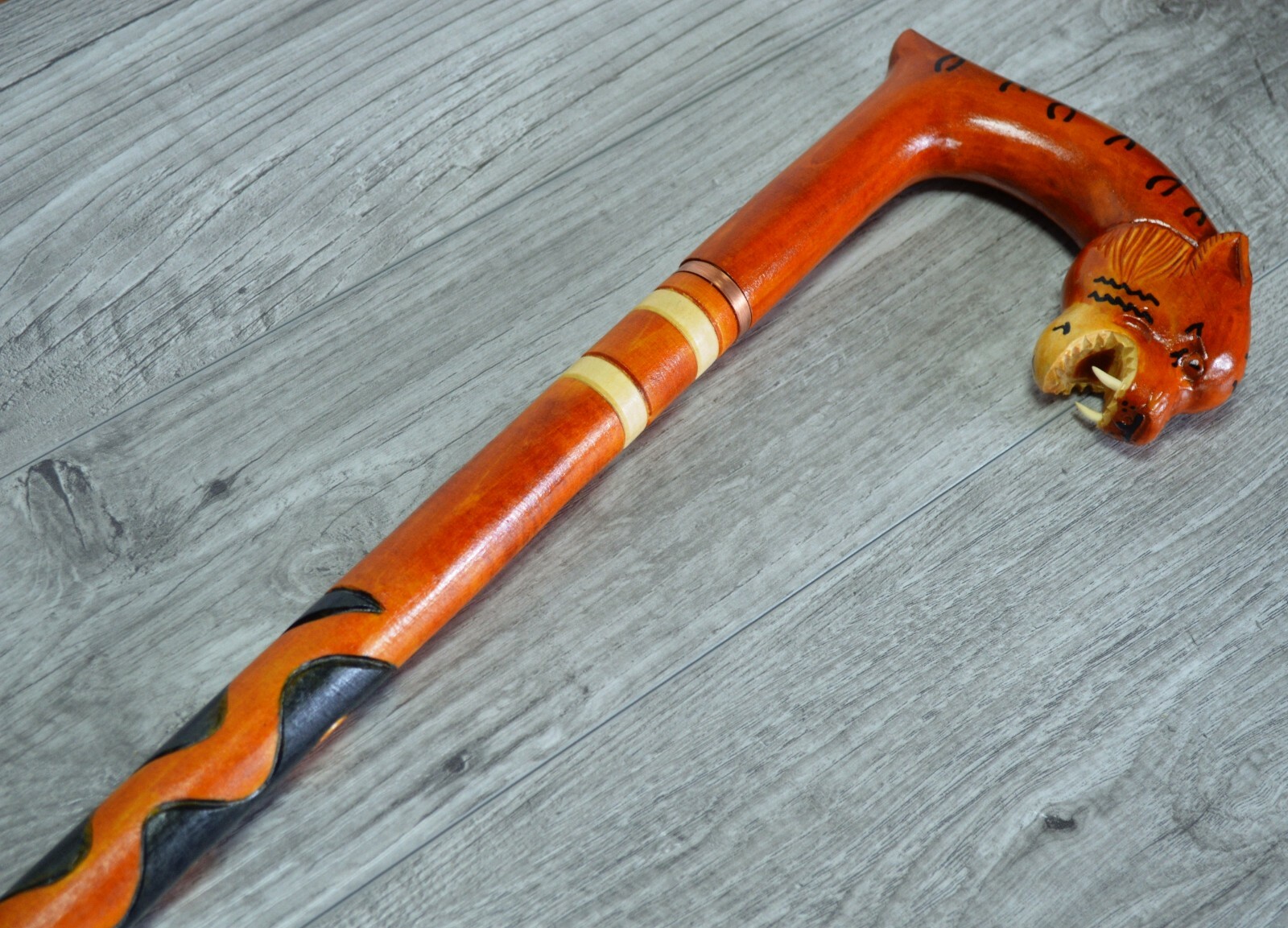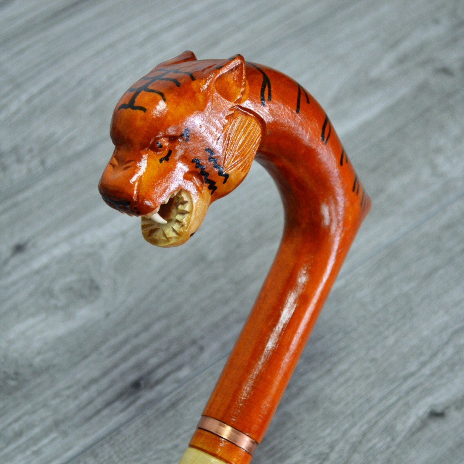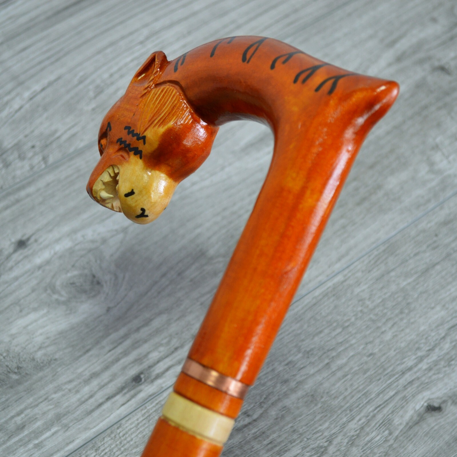 Cane Walking Stick Wooden carved Handmade - Tiger / UK