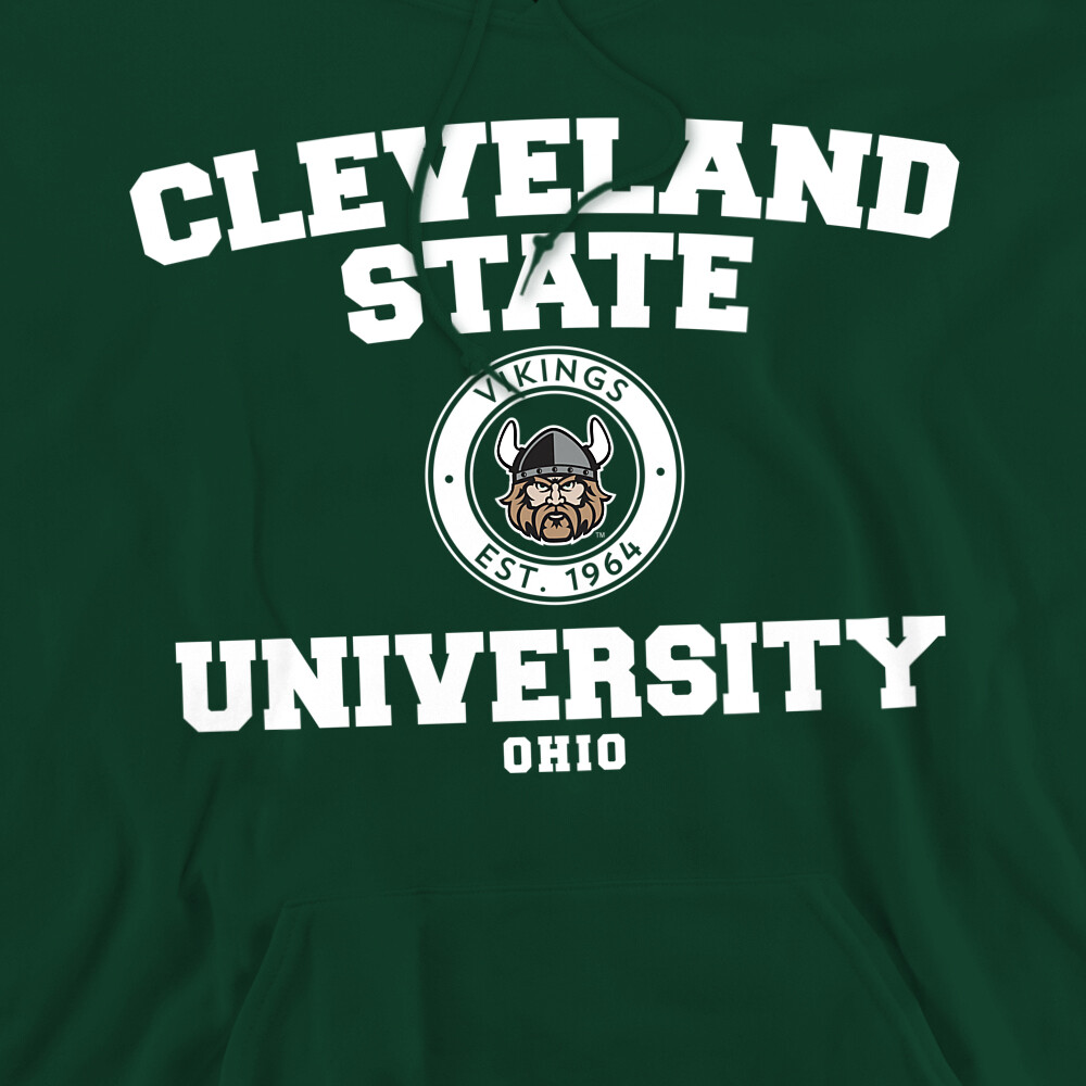 Cleveland State Adult Pullover Hoodie Circle Logo, Hunter Green, S-3XL