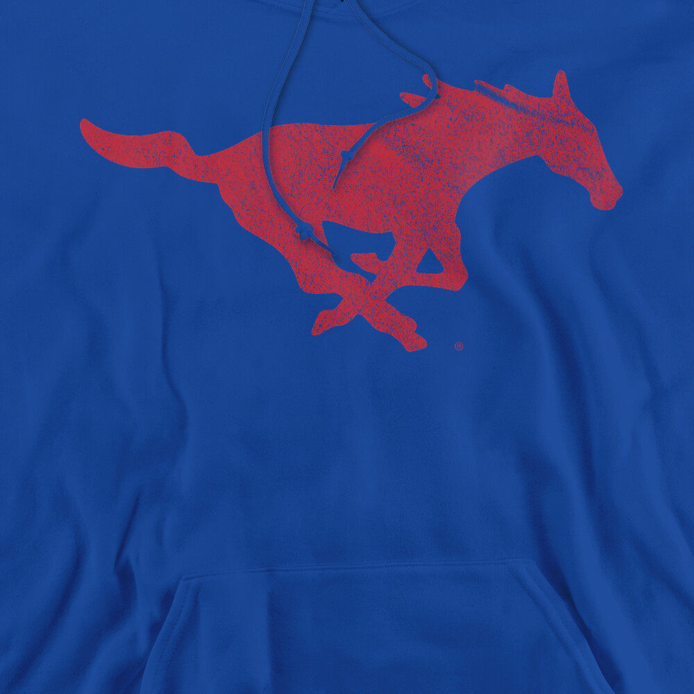 Southern Methodist Adult Pullover Hoodie Distressed Logo, Royal Blue, S-3XL