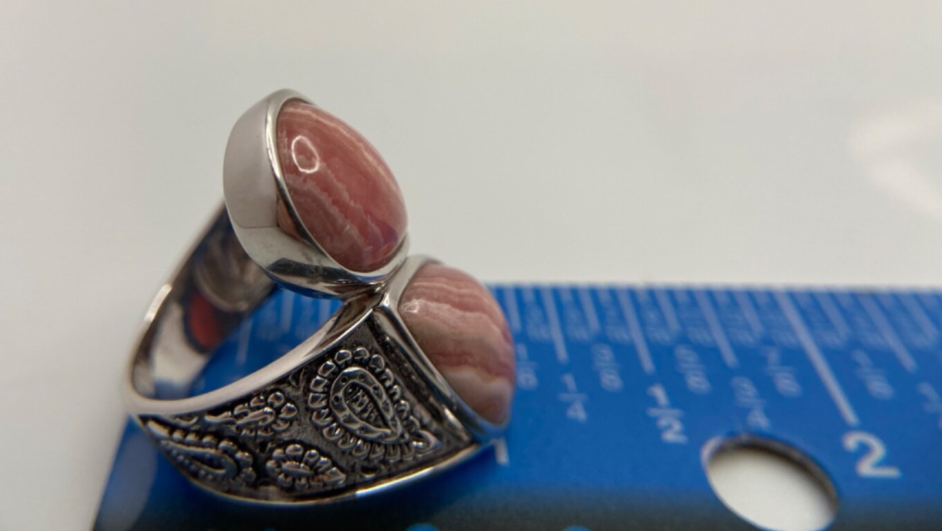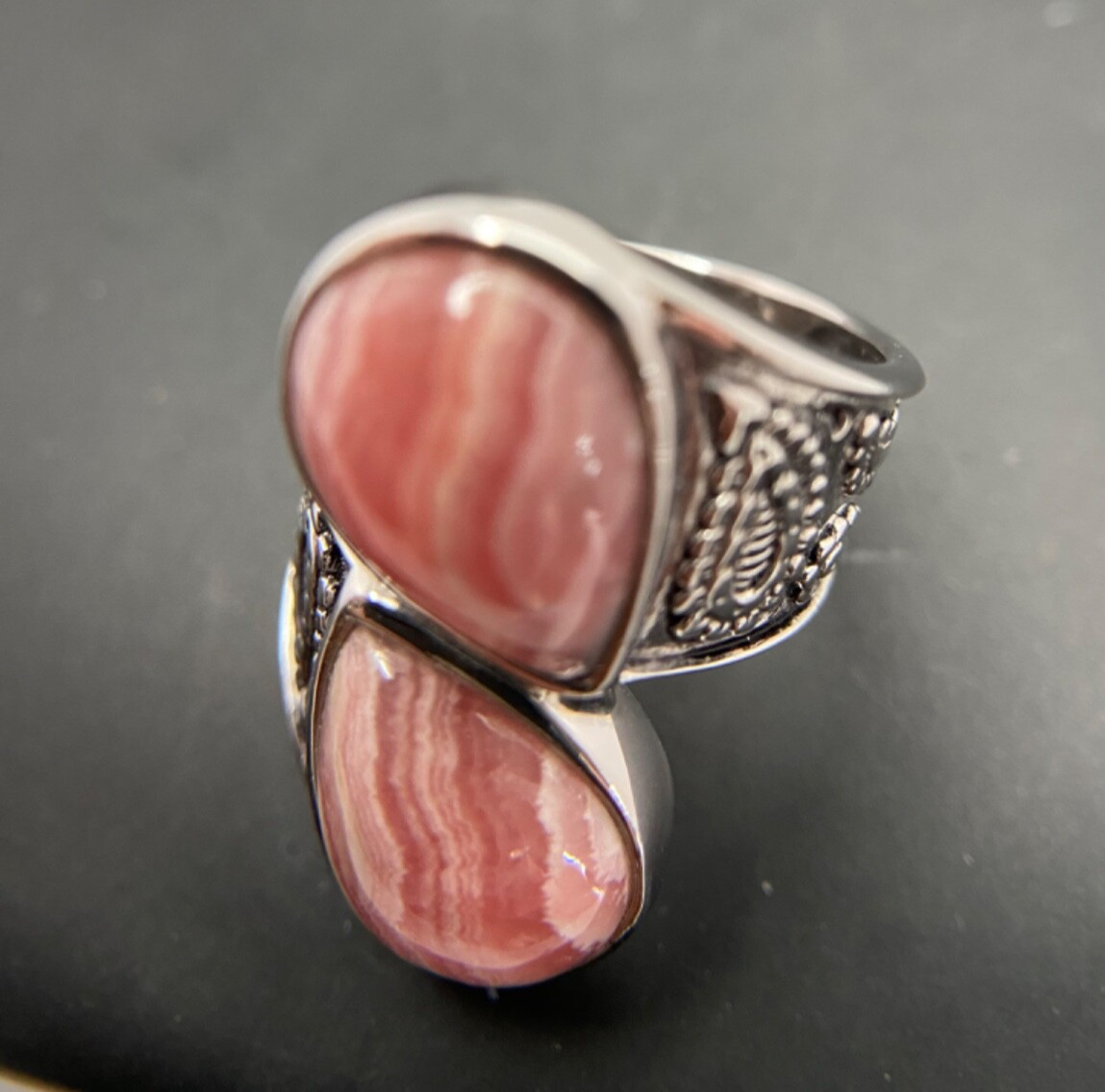 как выглядит Sterling Silver, Rhodochrosite Bypass Style Ring Sz 6.75 фото