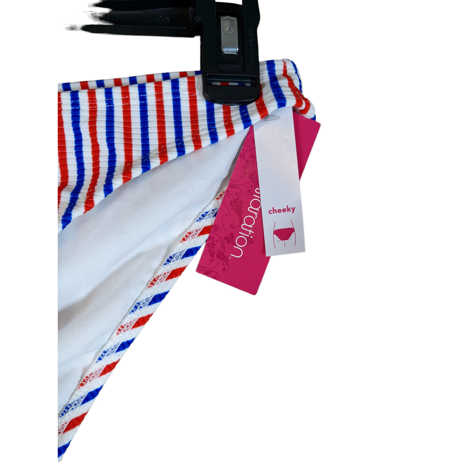 Xhilaration Juniors' Ribbed Cheeky Bikini Bottom Red/White/Blue Stripe XL 12-14