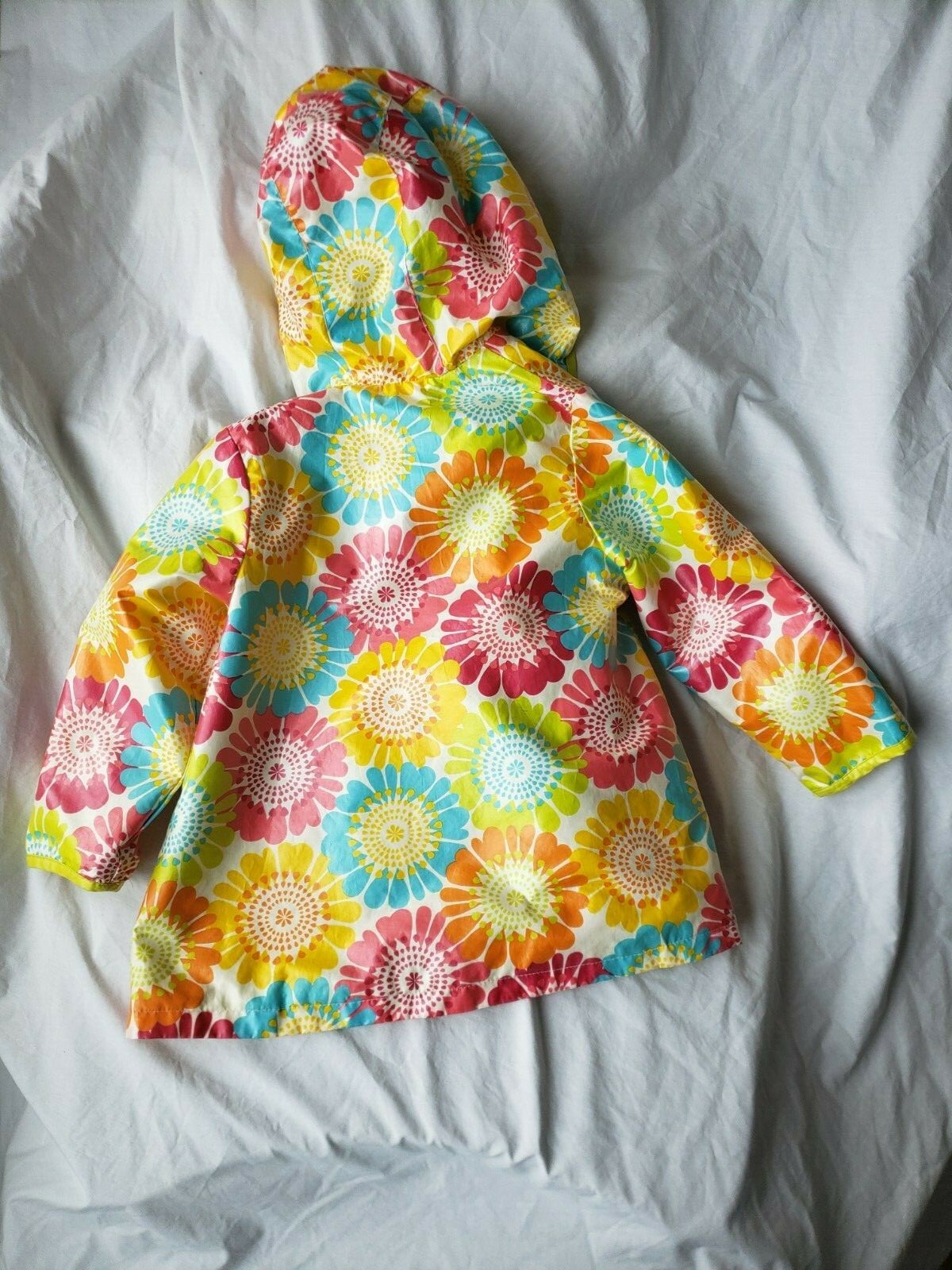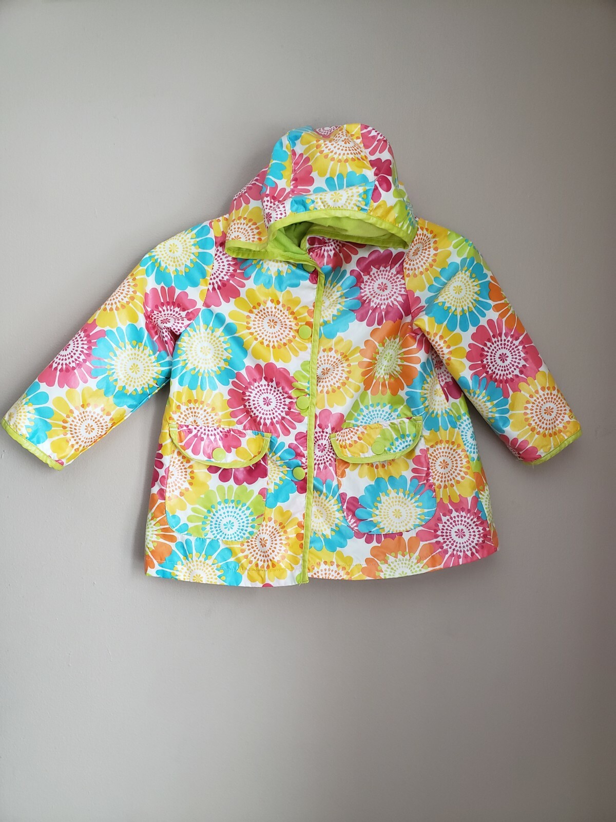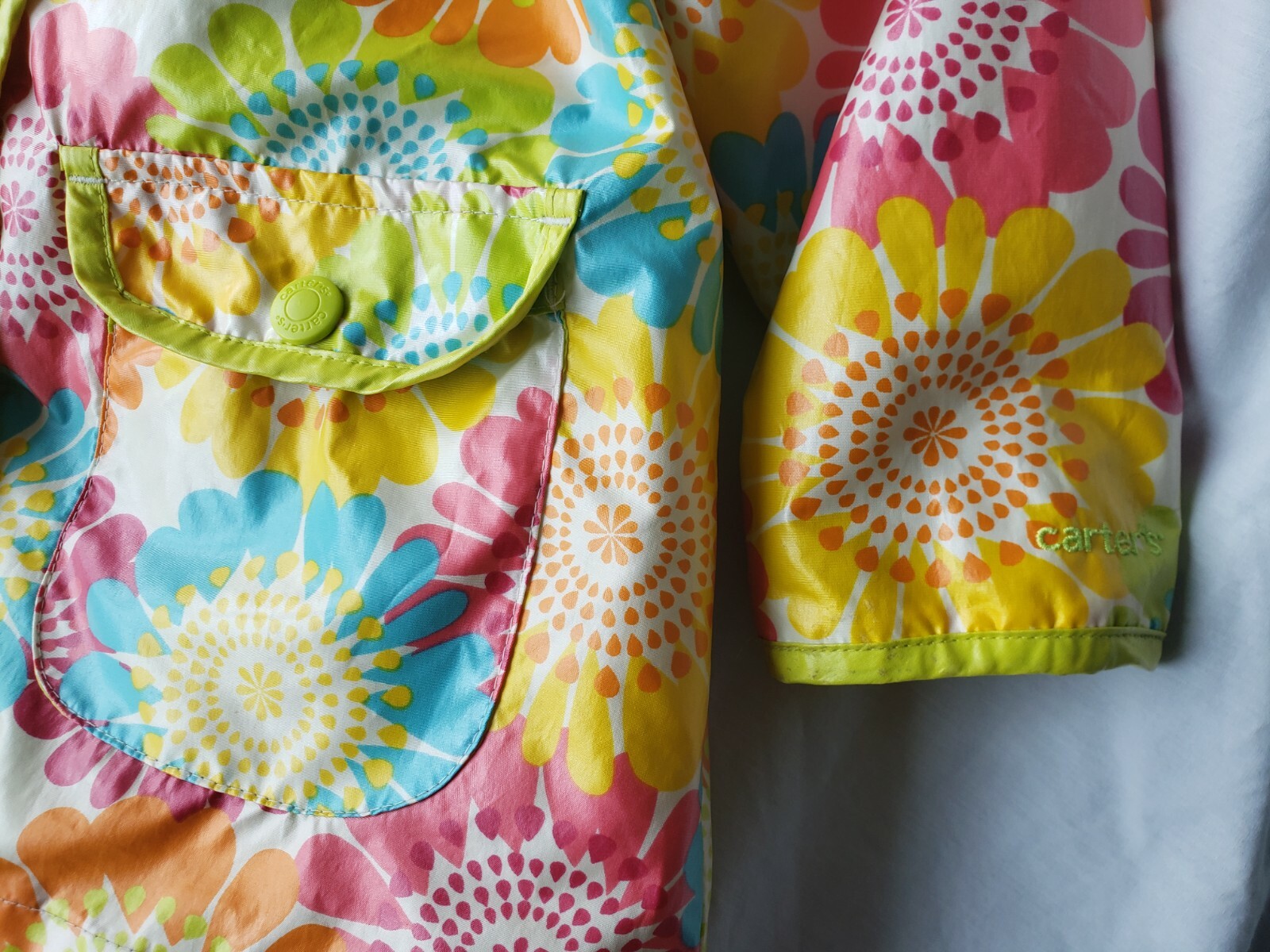 как выглядит GIRLS CARTERS YELLOW PINK BLUE CIRCLE FLOWER FLORAL LINED RAIN JACKET COAT S 4 фото