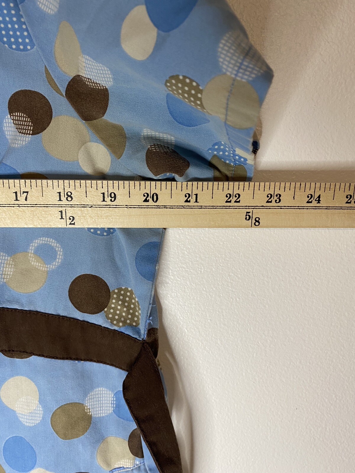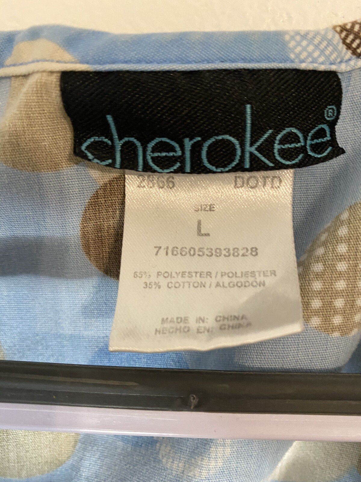 как выглядит Cherokee Scrub Top Medical Uniform Large Brown Blue Polka Dots фото