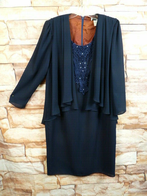 Vintage After Dark Deep Blue Dress Evening Gown Mother of the Bride Sz 17-18