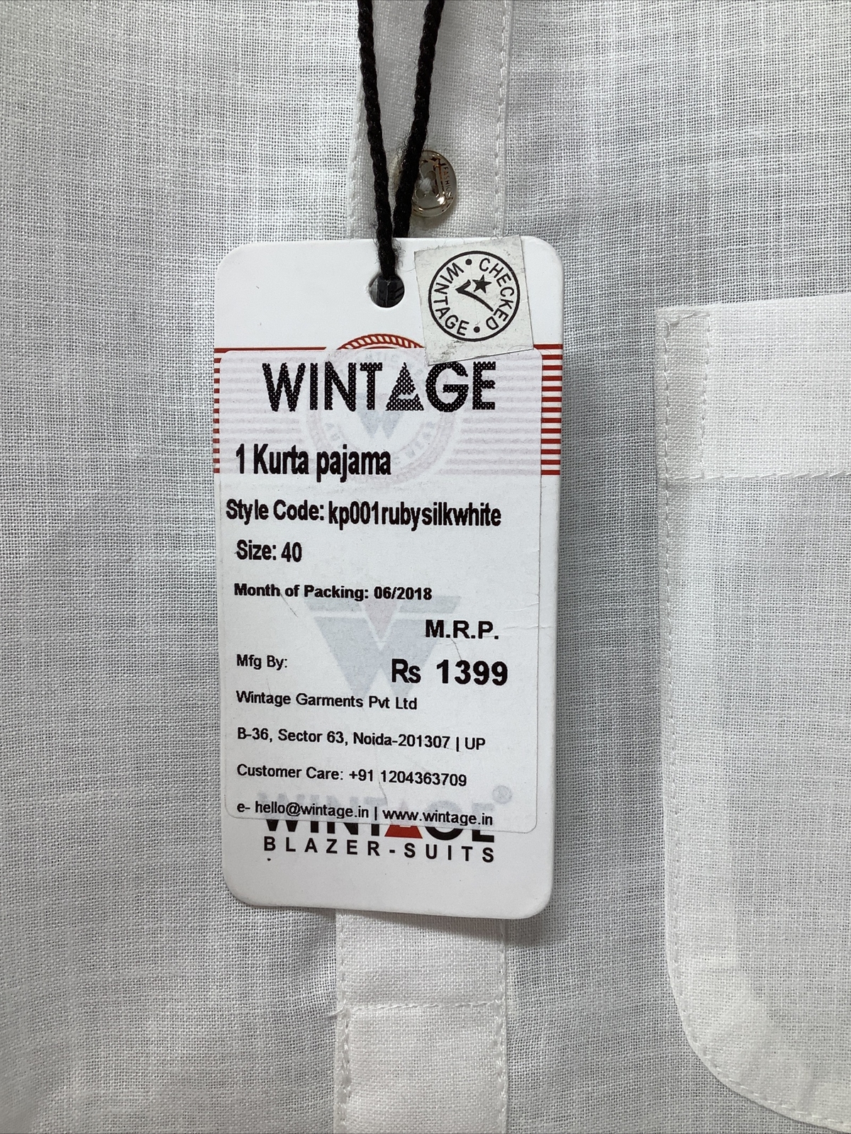 Wintage Men's Kurta Pajama Long Sleeve Size 40