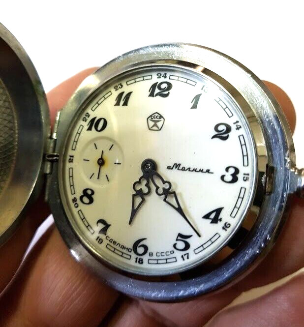 SOVIET RUSSIAN USSR VINTAGE POCKET WATCH MOLNIJA WORKING MECHANICAL RARITY