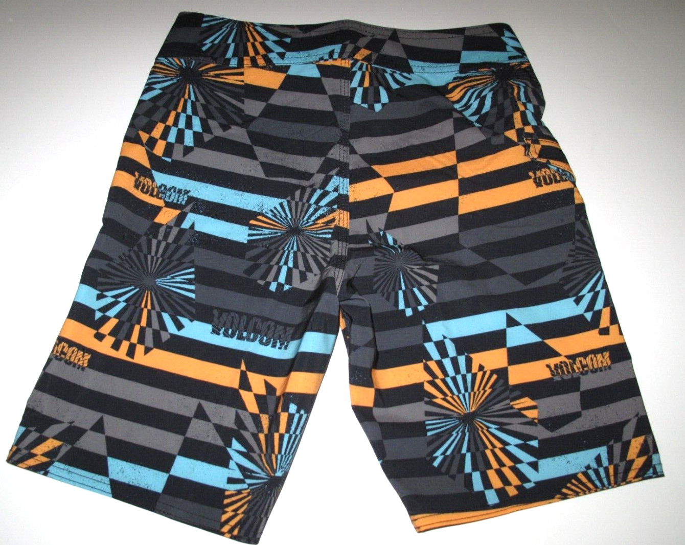 Volcom Boy's 27/14 Mod Tech Stone Stripe Board Shorts Black Orange Blue Stretch