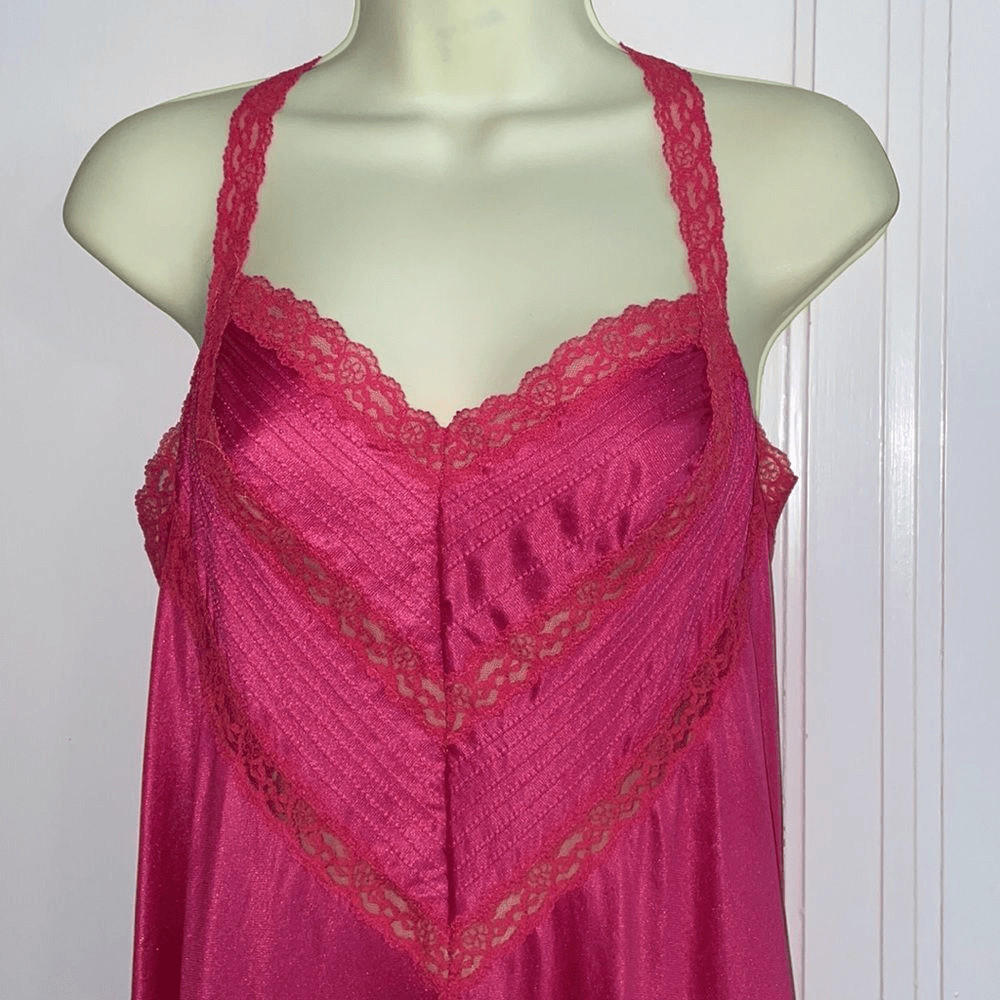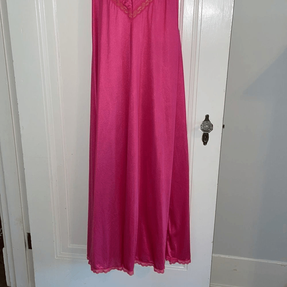 как выглядит Vtg 70s Formfit Rogers fuchsia pink nylon nightgown robe set фото