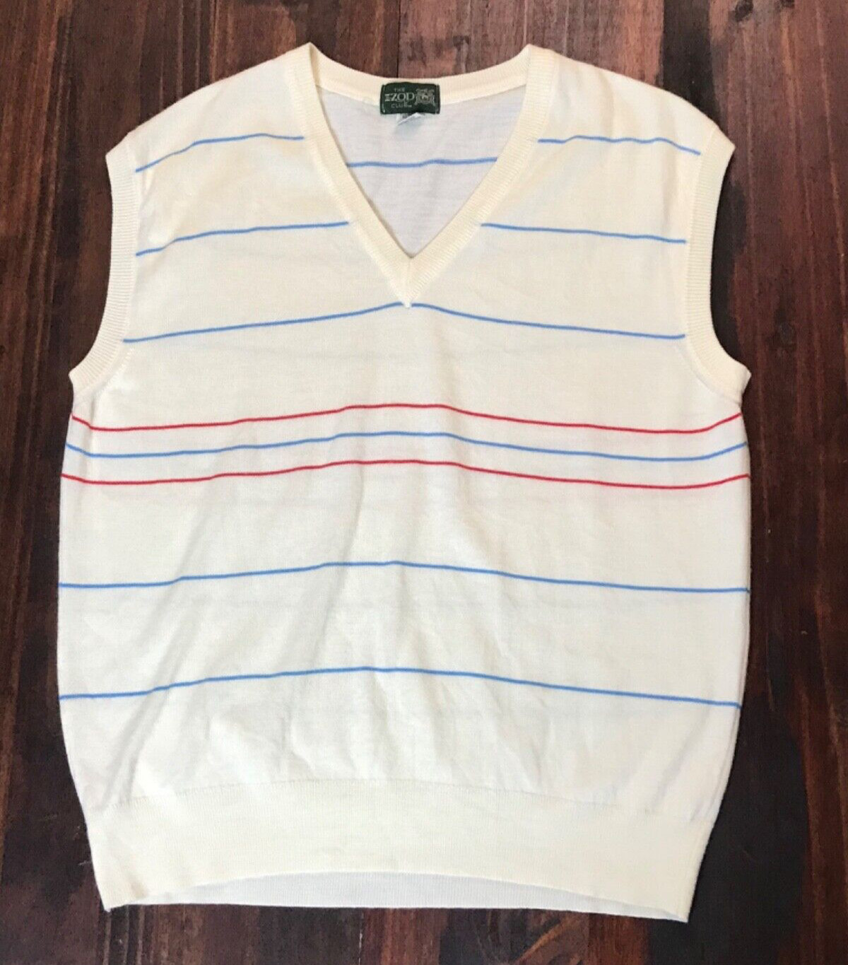 как выглядит Mens Vintage IZOD CLUB Sweater Vest White Acrylic Blend Size Medium фото