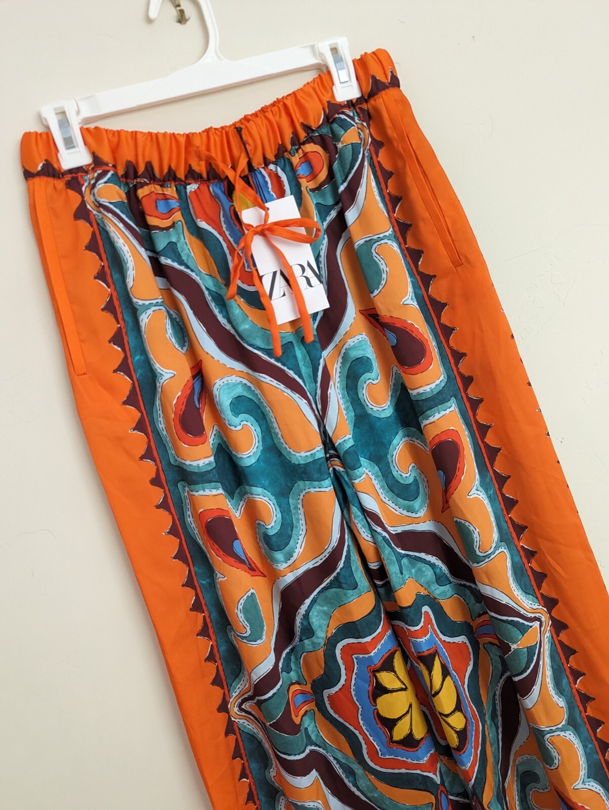 как выглядит ZARA NEW WOMAN SS23 ORANGE FLOWY PRINTED PANTS REF:3098/156 XS,S,M,L,XL фото