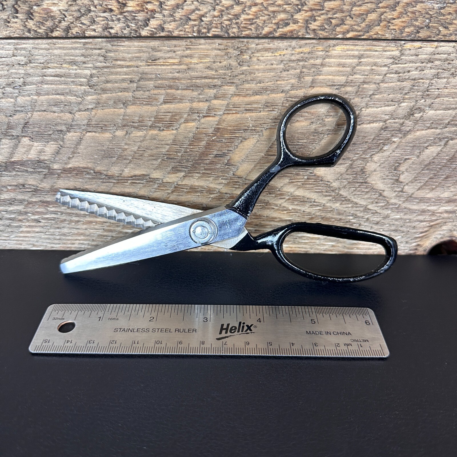 Vintage Pinking Crafting Shears High-Quality Black Handle Sewing Scissors, Japan