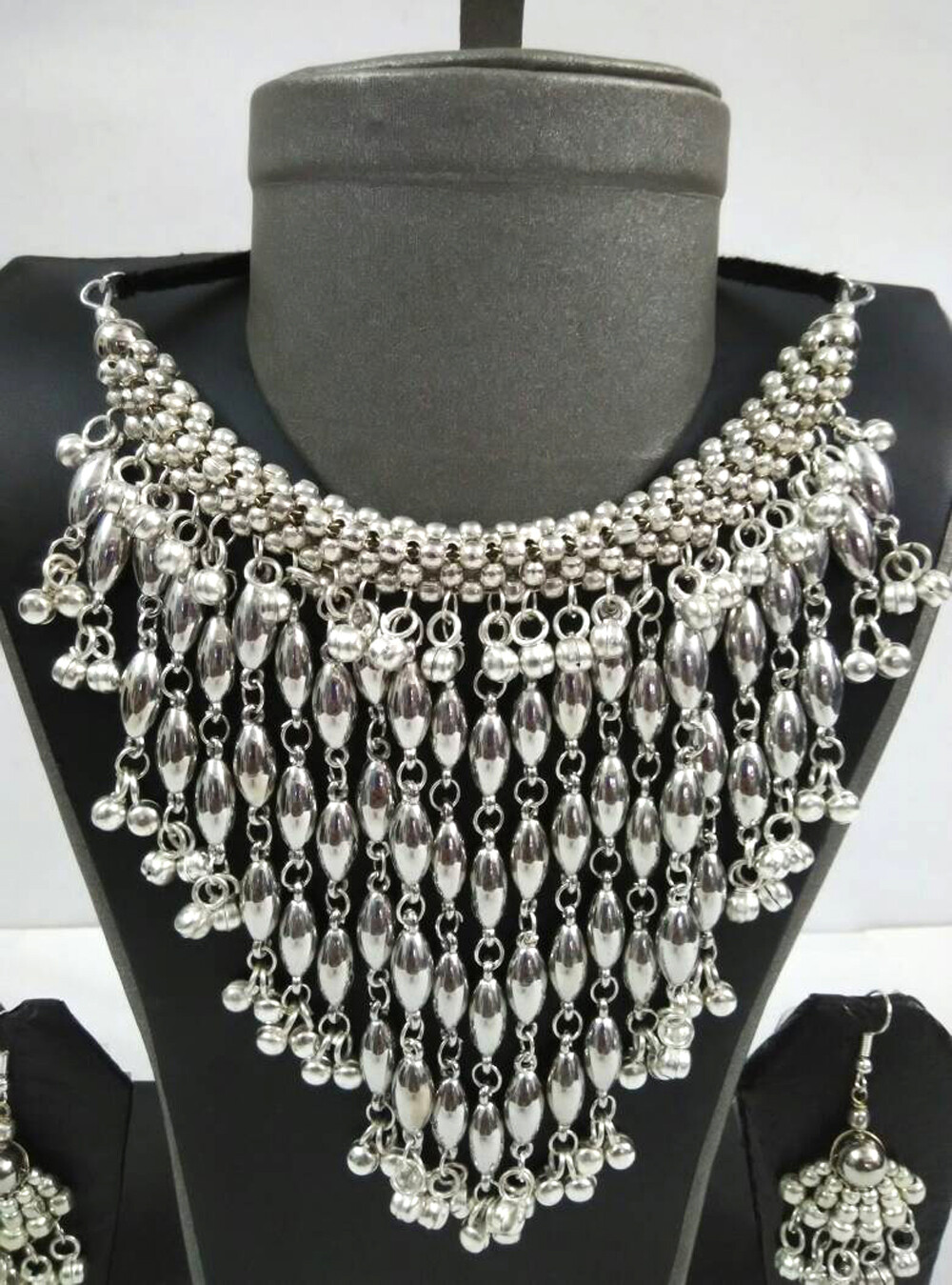 как выглядит Belly Dance Women Tribal Handcrafted Hanging Silver Beaded Necklace Earring фото