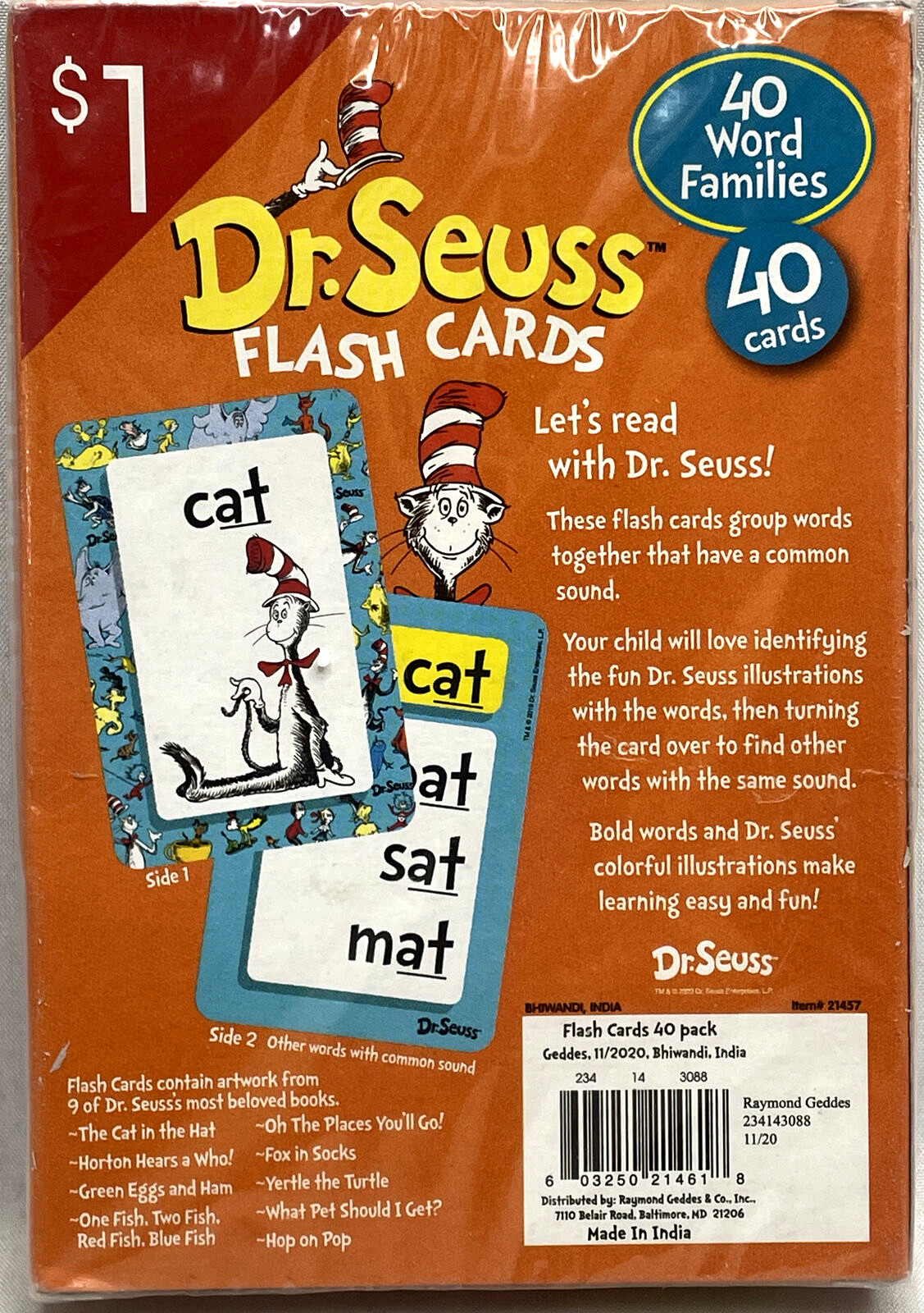 Dr Seuss Flash Cards 40 Word Families Educational Learning Cards New