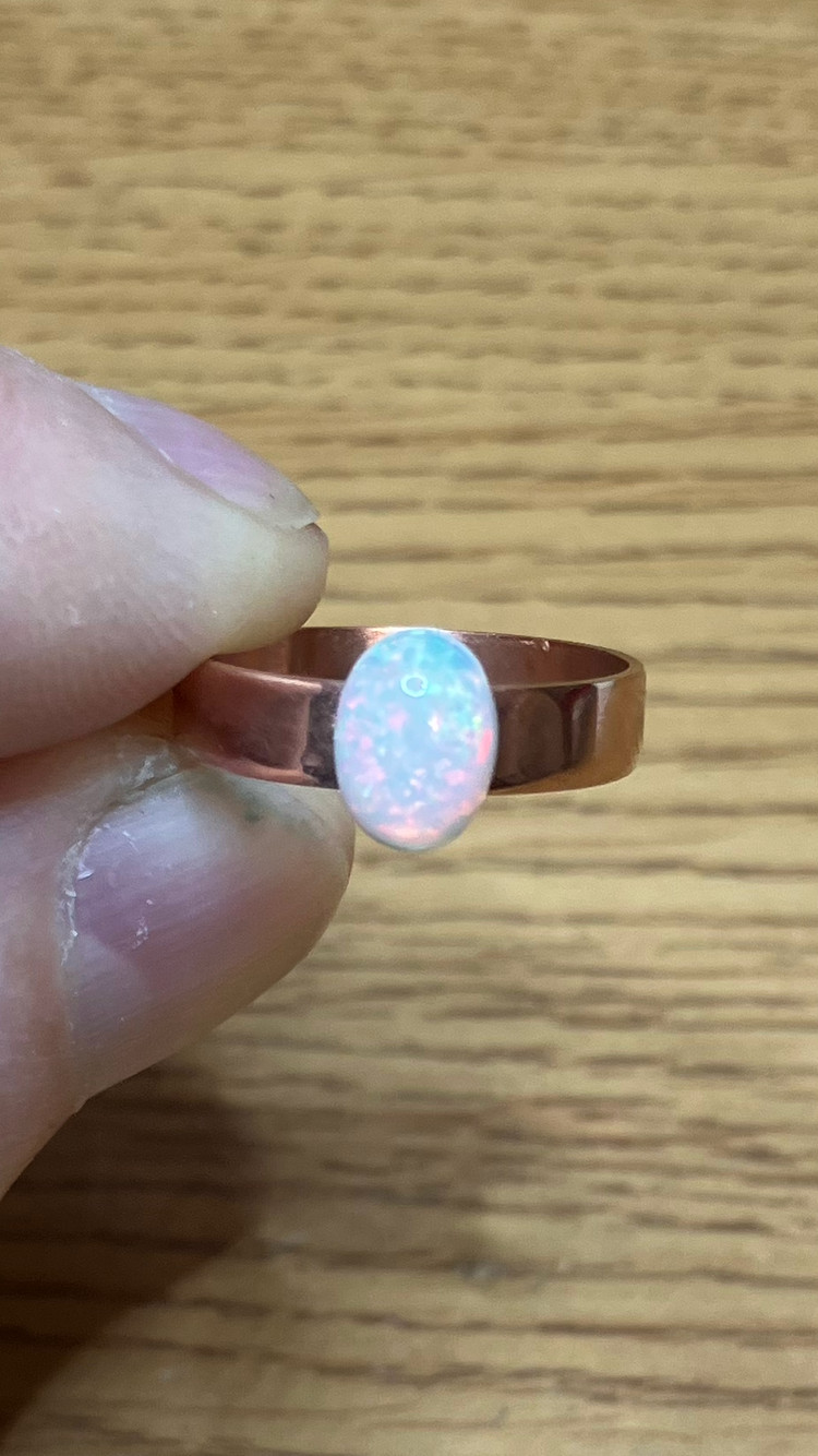 как выглядит 197B-Handcrafted Copper Ring Size 7 with a Genuine 1.24ct Ethiopian Welo Opal фото