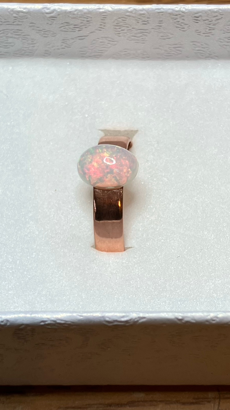 197B-Handcrafted Copper Ring Size 7 with a Genuine 1.24ct Ethiopian Welo Opal
