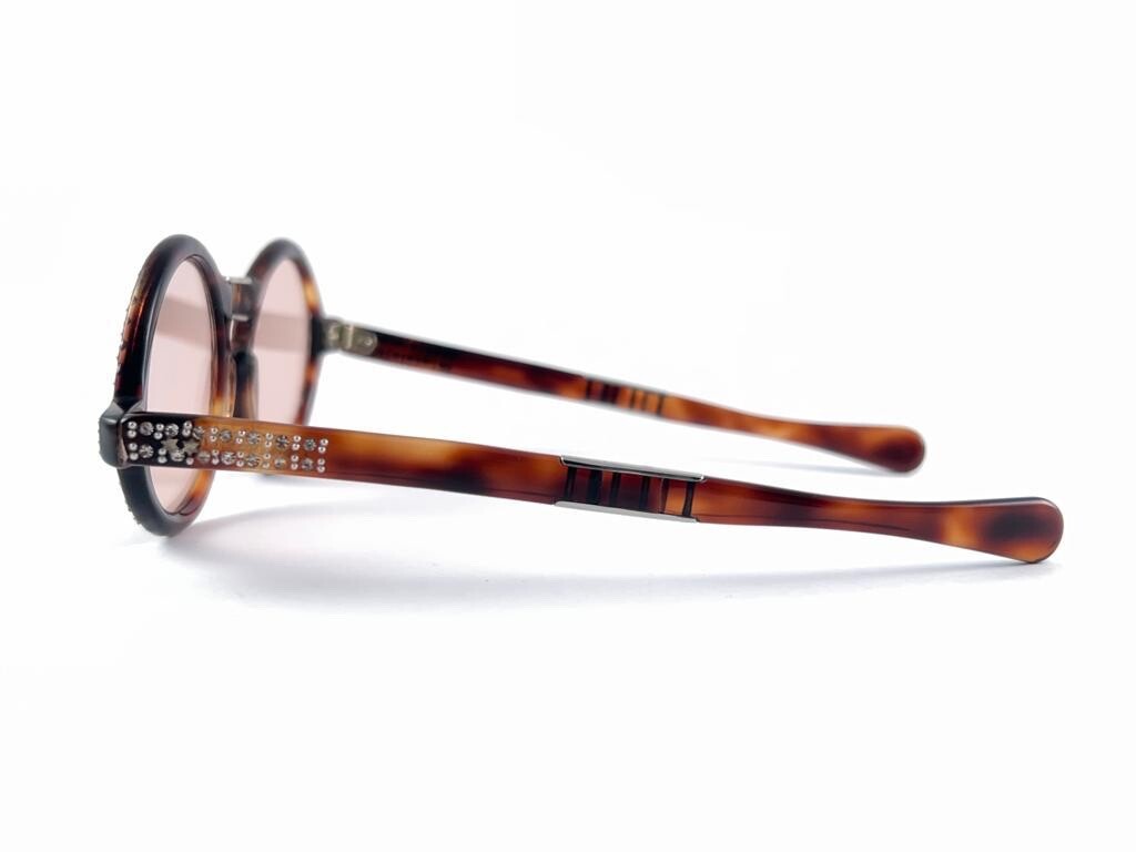 MINT VINTAGE ROUND RHINESTONES TORTOISE FOLDABLE 1980'S FRANCE SUNGLASSES