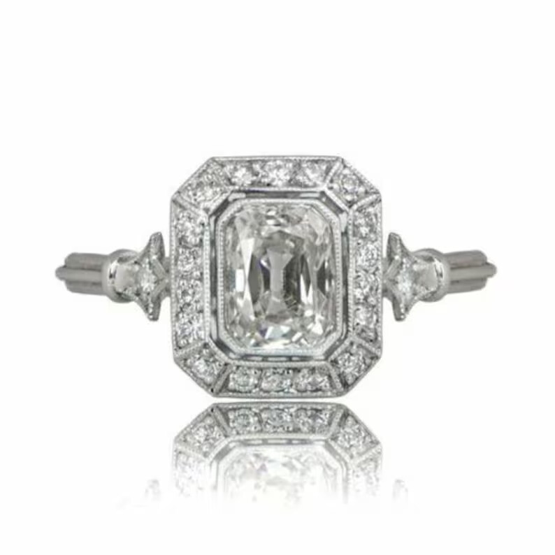 как выглядит Art Deco 1 CT White Radiant Cut CZ Antique Engagement Wedding Ring 925 Silver фото